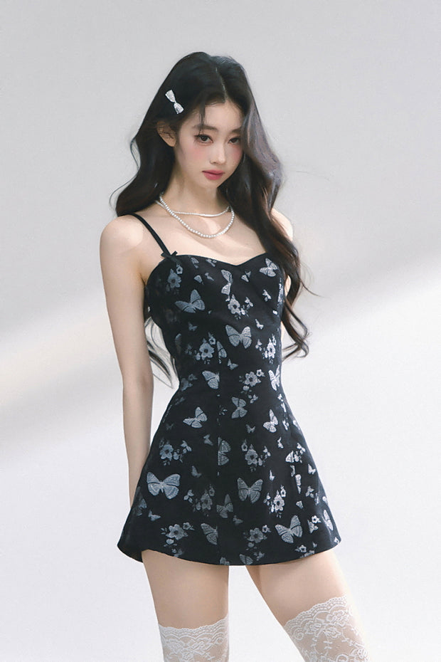 Shimmering metallic butterflies dance across a sleek black canvas, creating a dreamy yet edgy vibe. Perfect for anyone who wants to mix playful romance with dark allure.