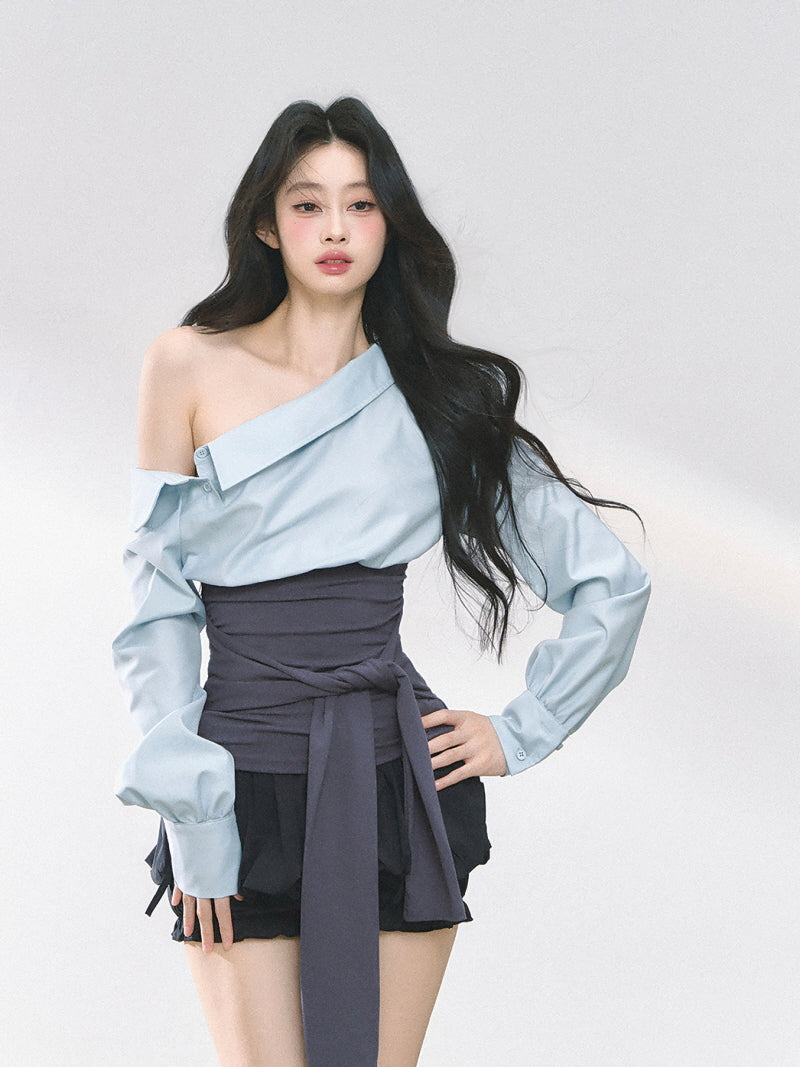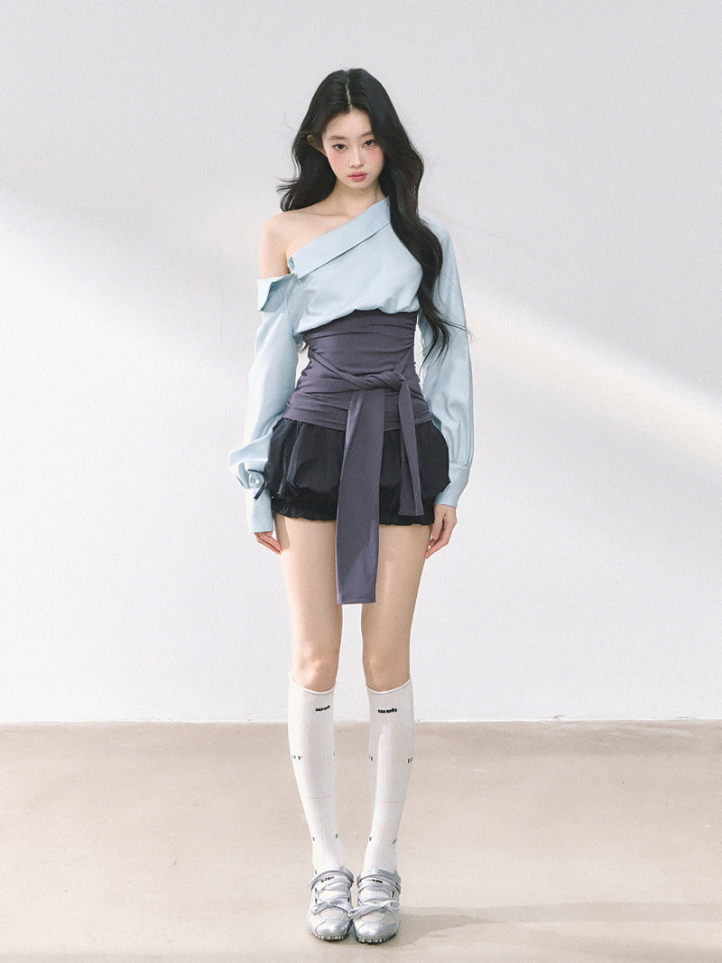 Asymmetry Bow Top - Blue