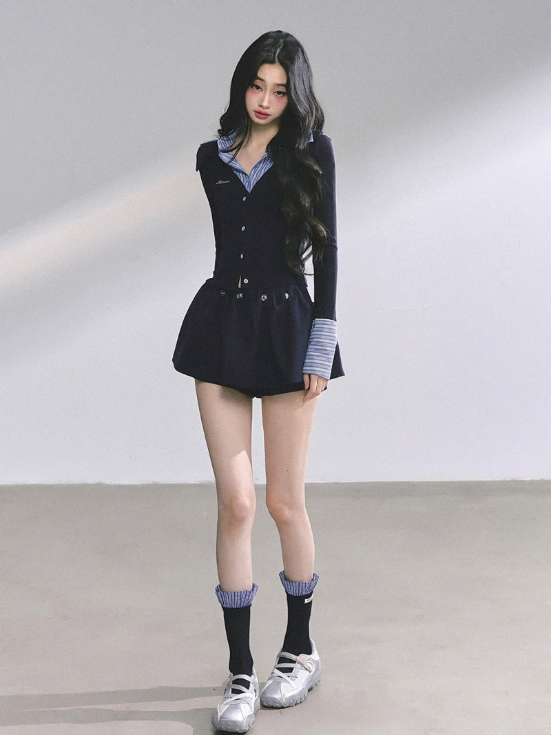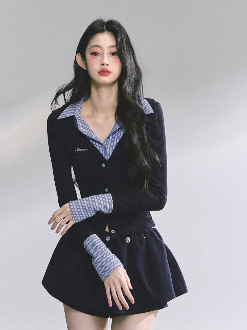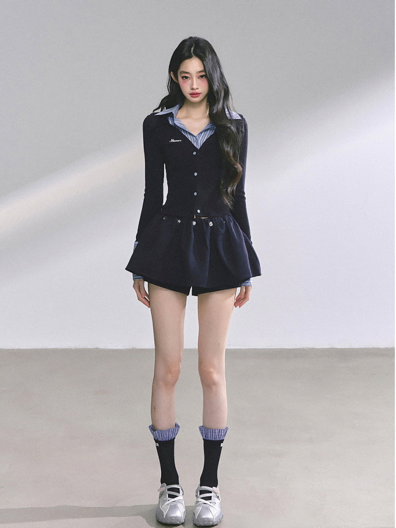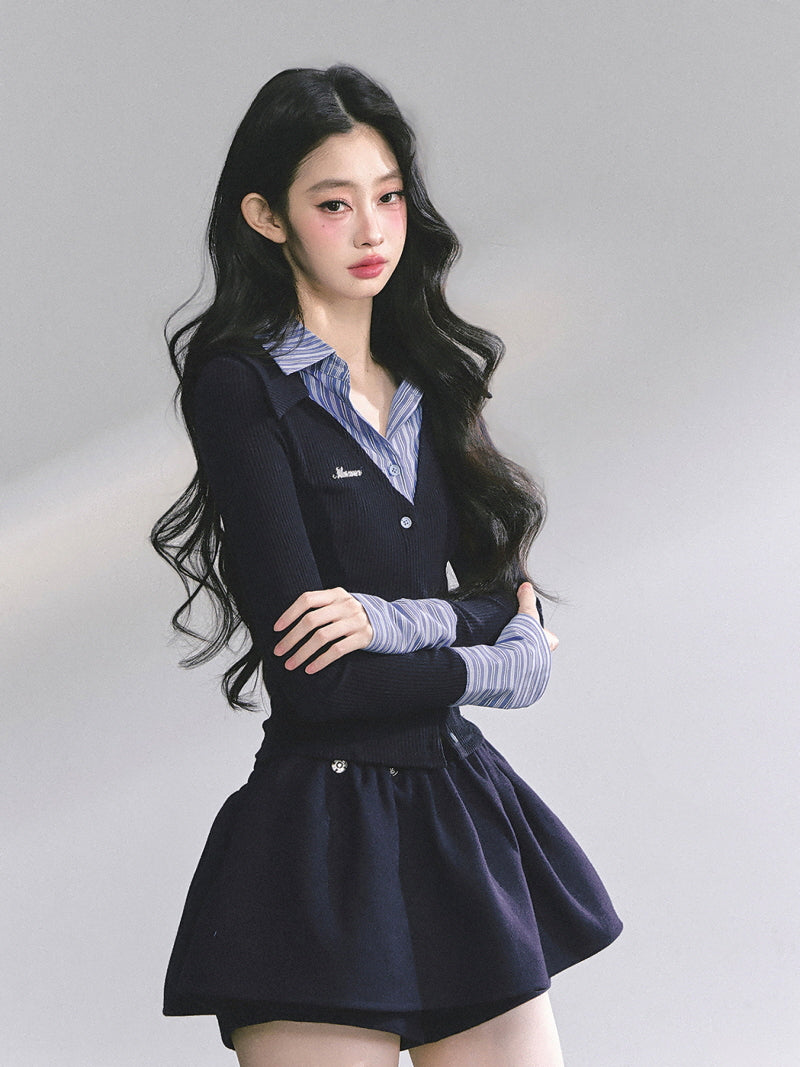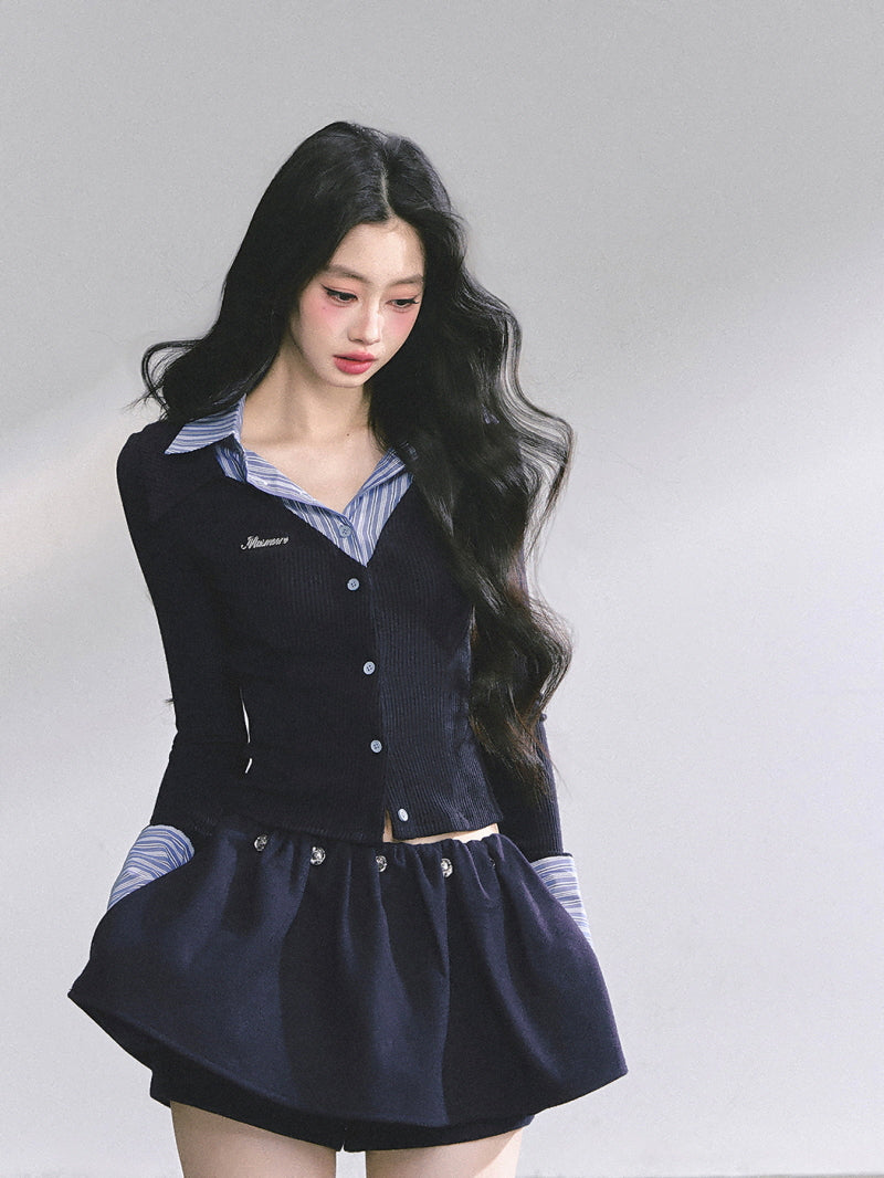 Attached Shirt Cardigan - Navy