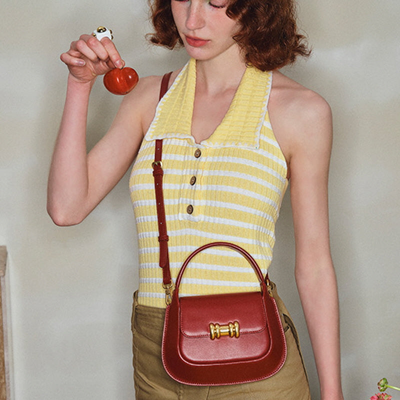 - Bold gold-tone clasp as central accent