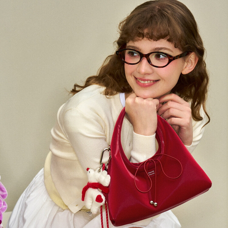 - Glossy patent texture for a youthful pop