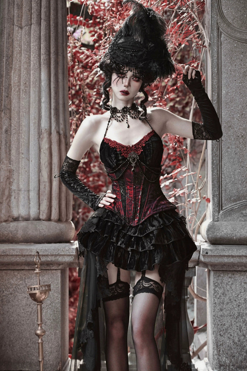 Bloodlace Burlesque Camisole & Fishbone Tunic & Skirt Set