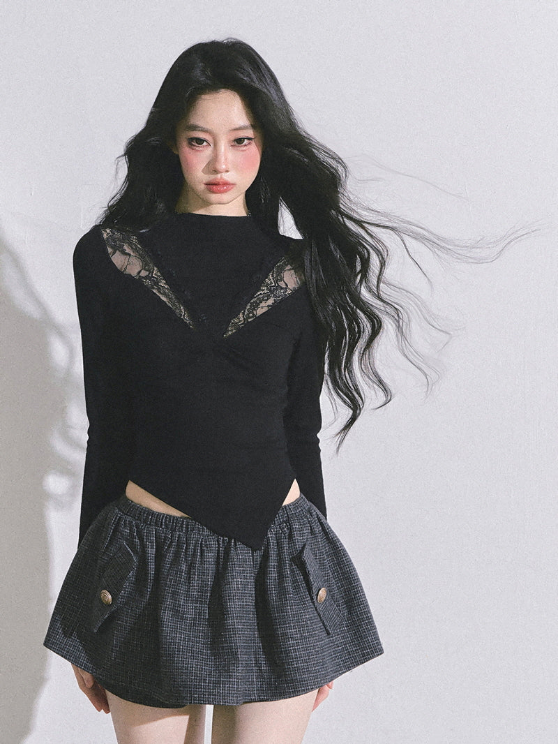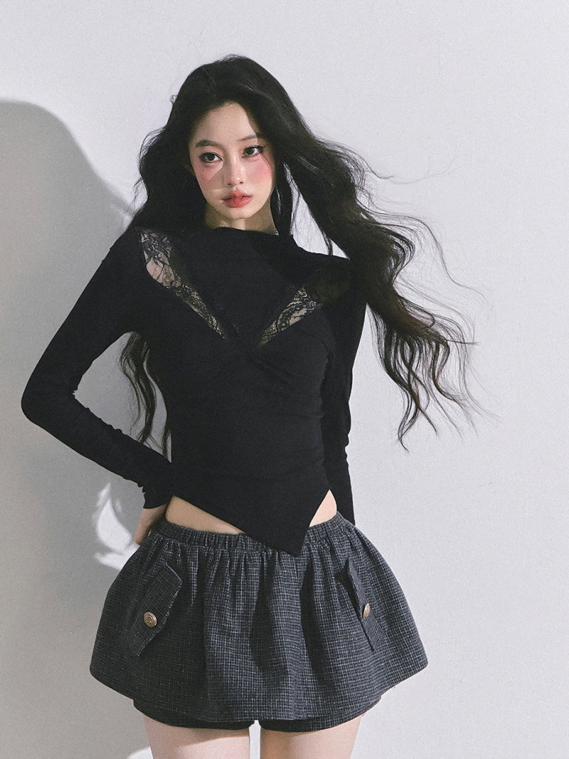 Bloom Lace V-Drape Top - Black
