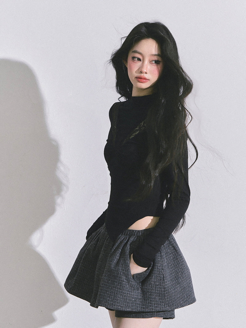 • High neckline balances skin exposure