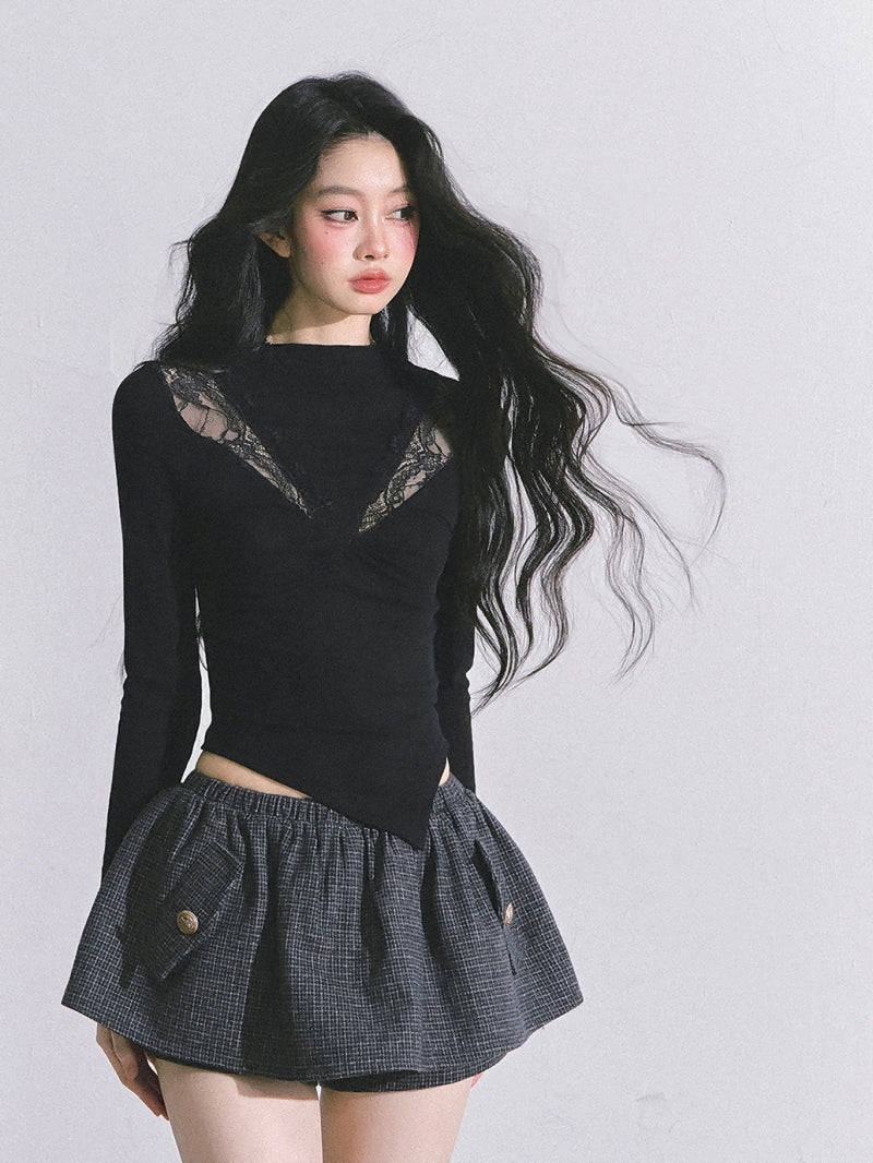 • Deep V lace inset for subtle allure