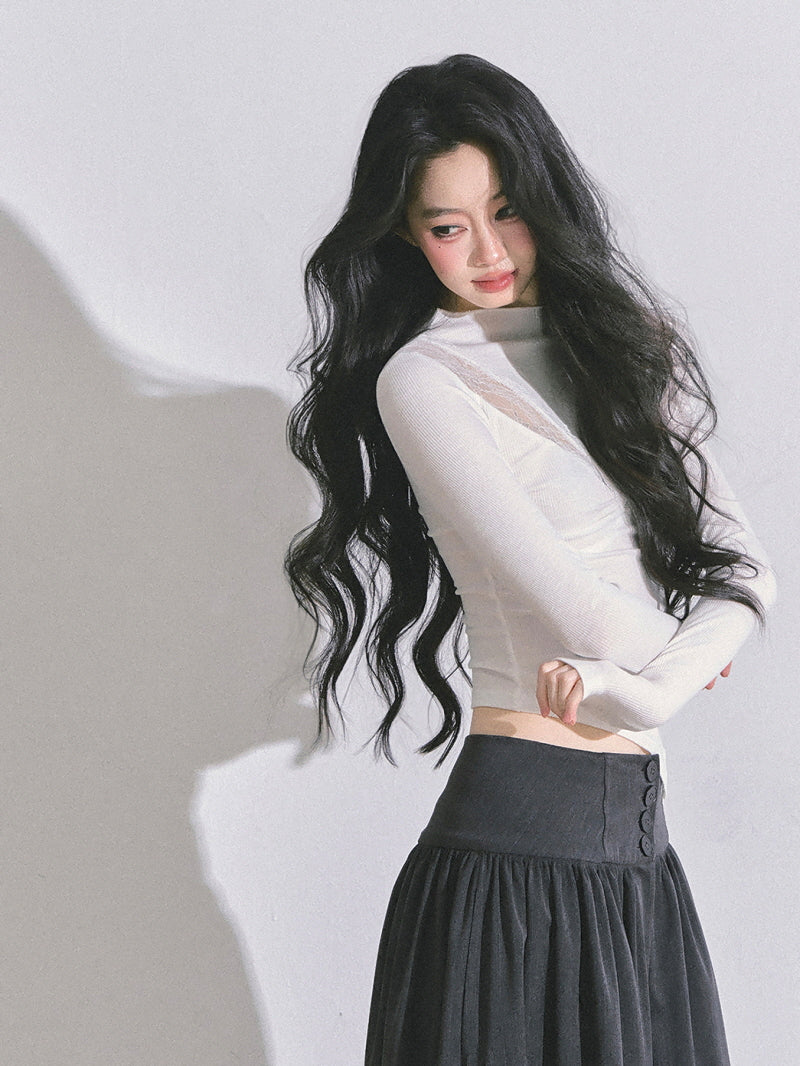 • High neckline balances skin exposure