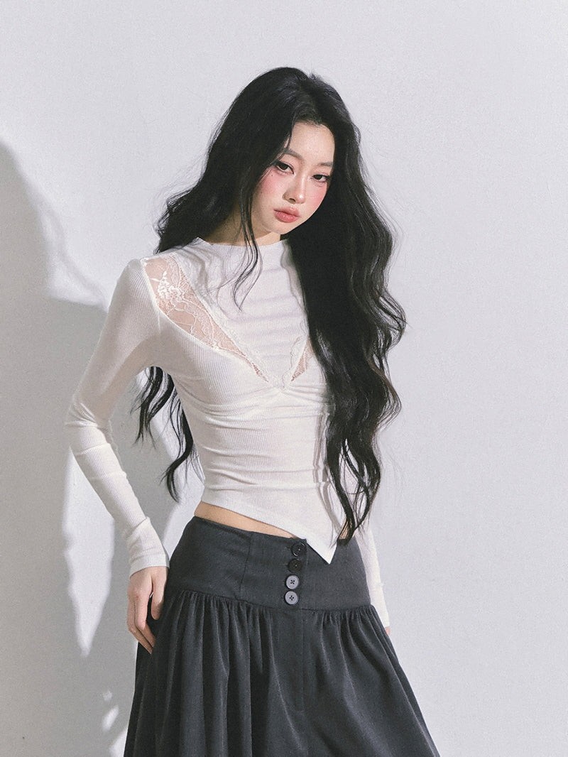 • Deep V lace inset for subtle allure