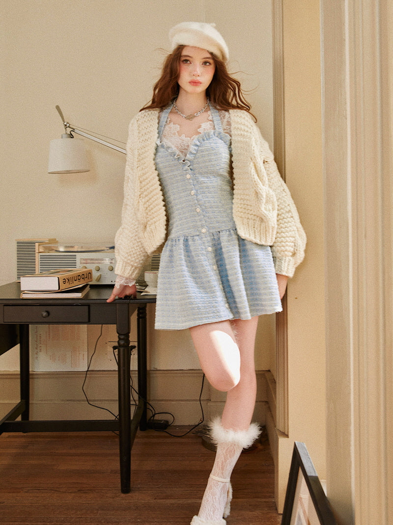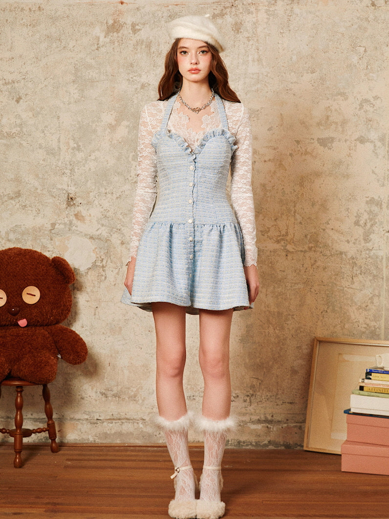Blue Tweed Button Mini Dress