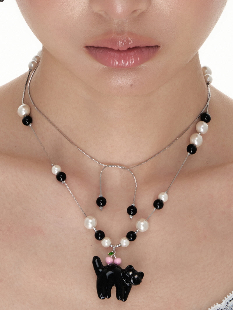 Cherry Cat Beaded Necklace
