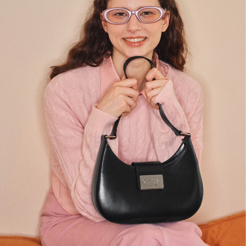 - Fits snug under the arm for a chic look