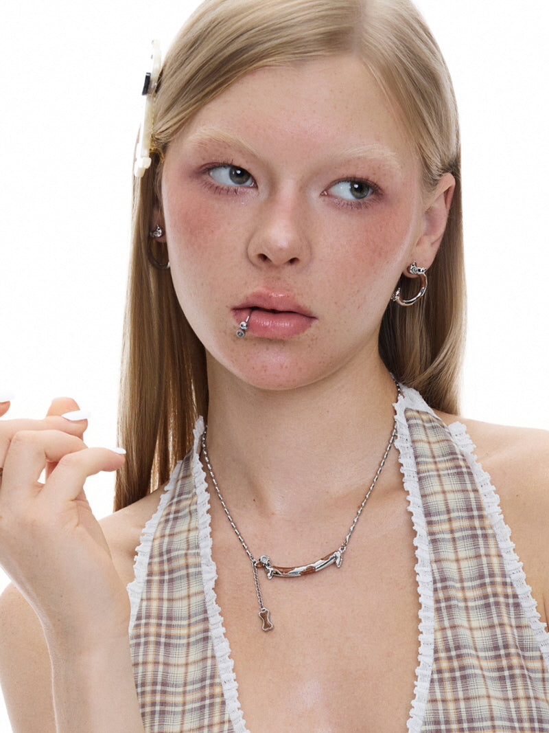 - Sleek silver finish with warm brown enamel accents