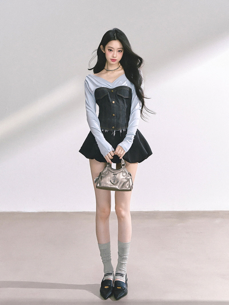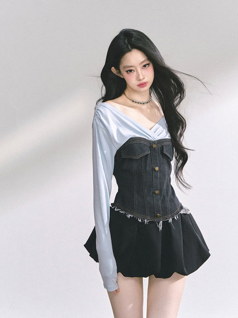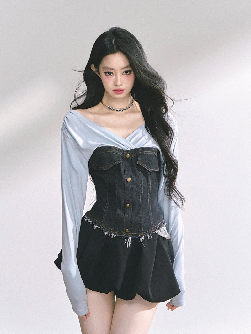 Denim Contrast Top