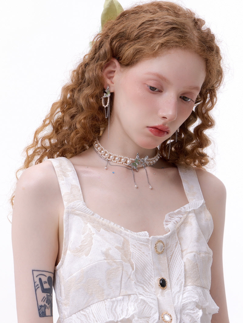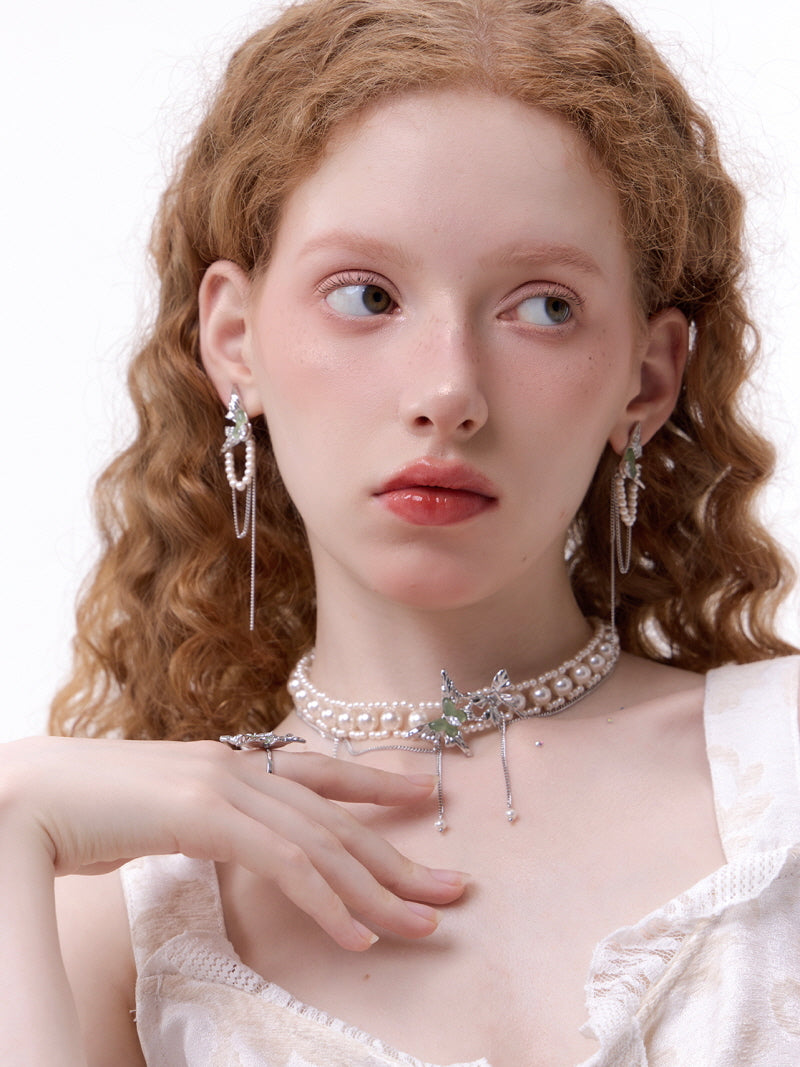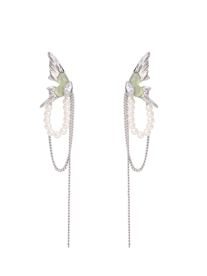 Emerald Butterfly Pearl Drop Earrings