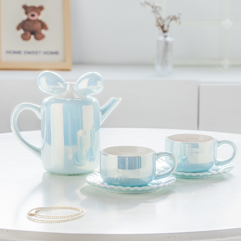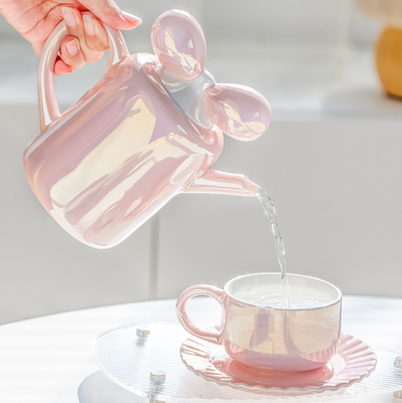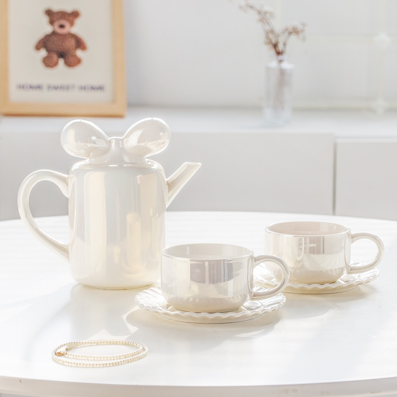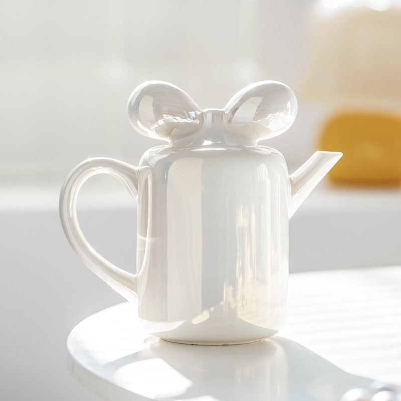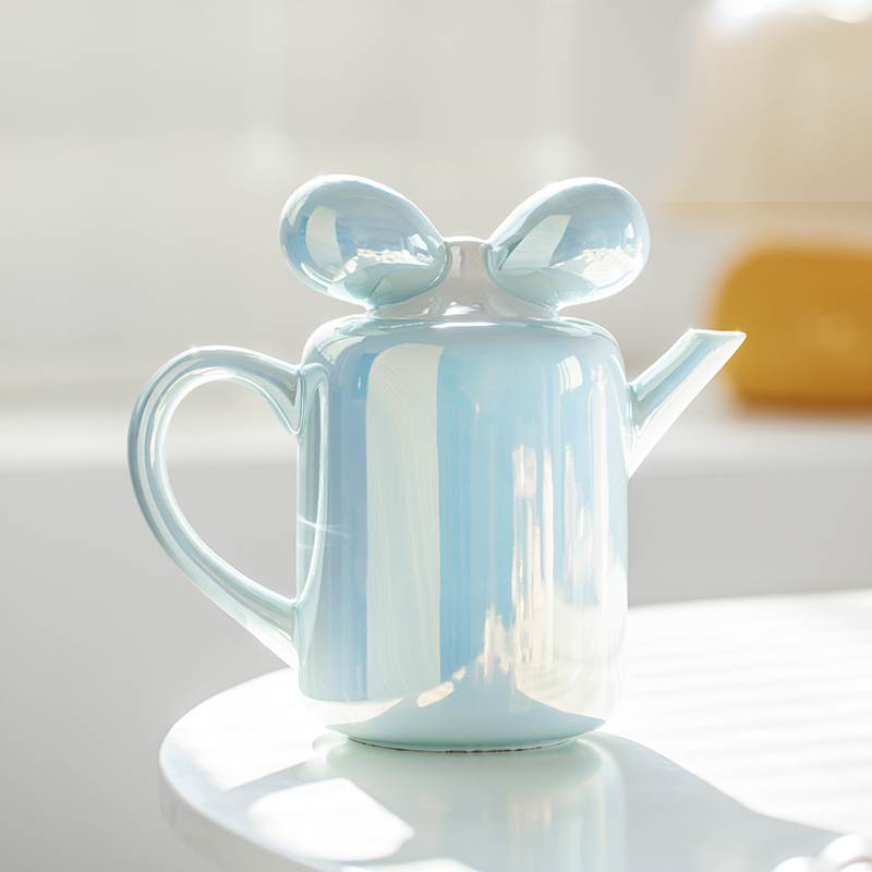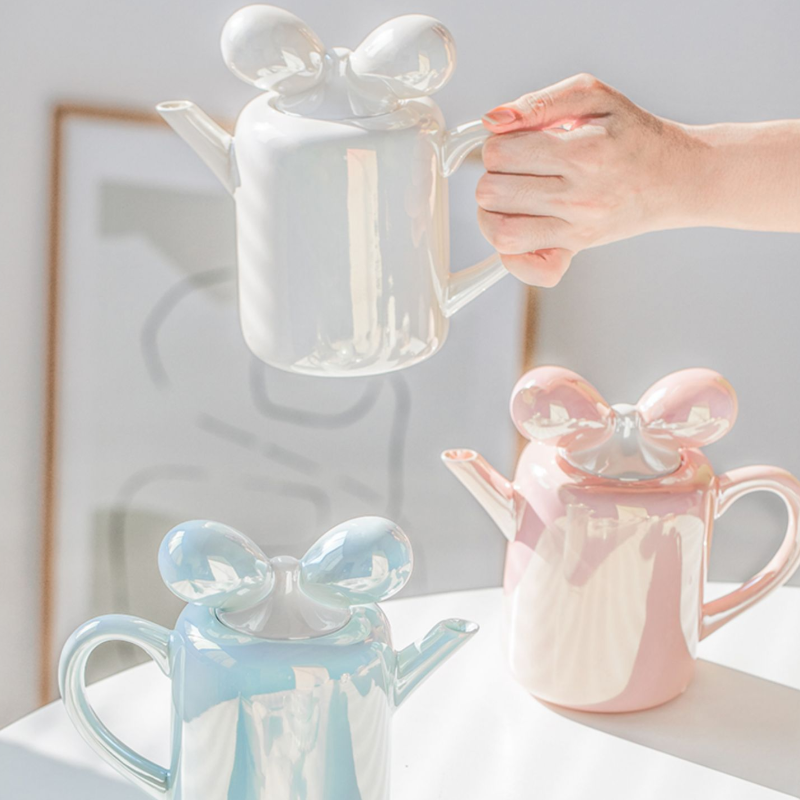 - Ribbon-shaped teapot lid for playful elegance