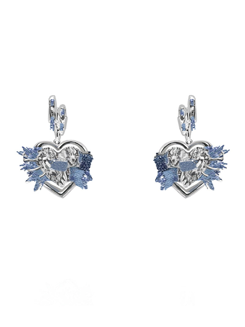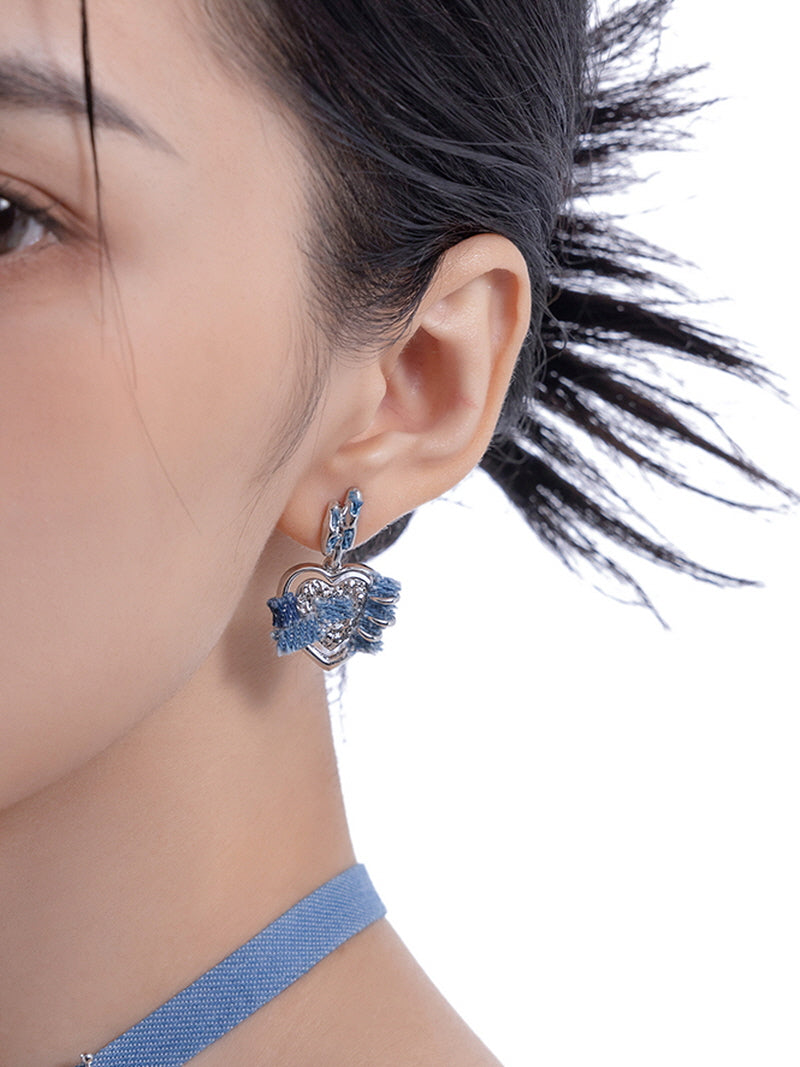 Frayed Heart Denim Earrings