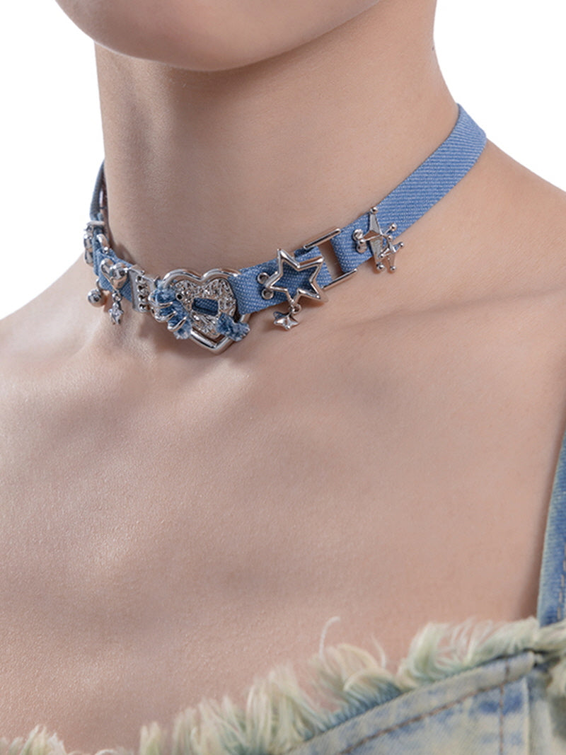 Frayed Star Denim Choker