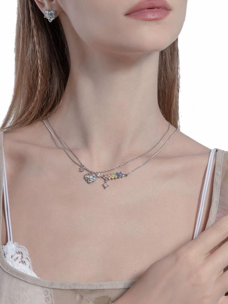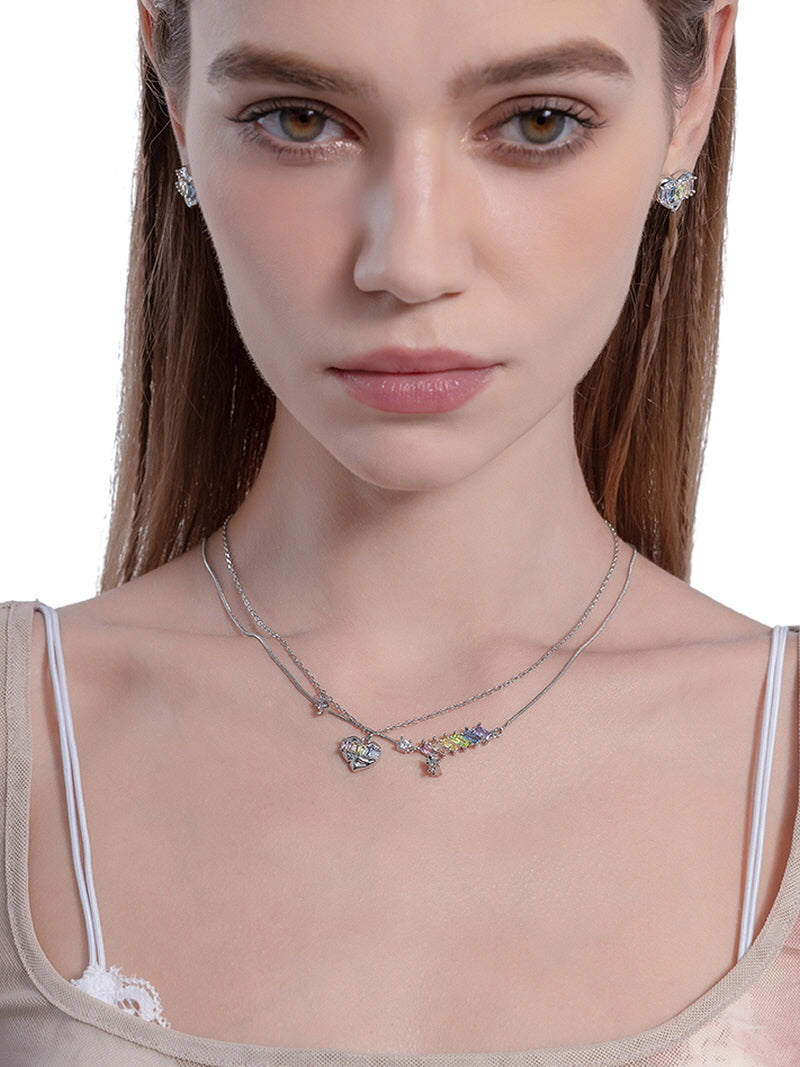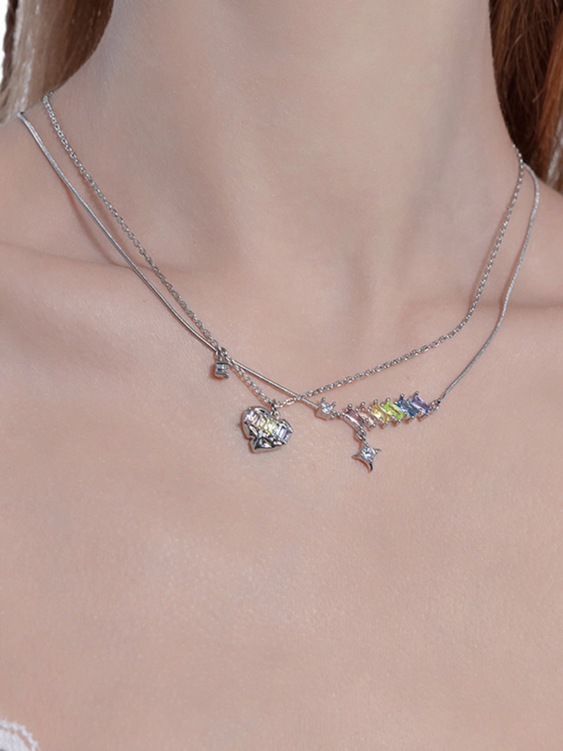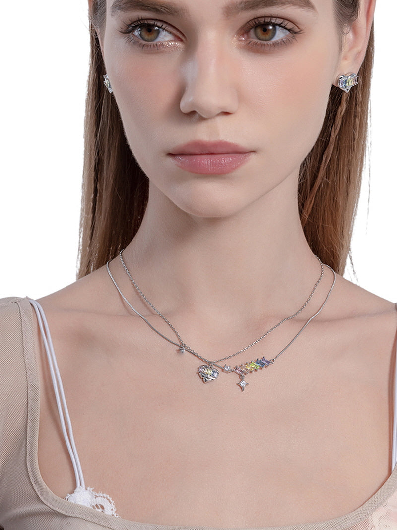 Iridescent Heart Layered Necklace
