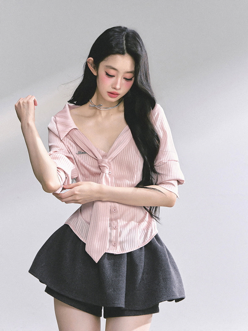- Deep V neckline enhances feminine décolleté line