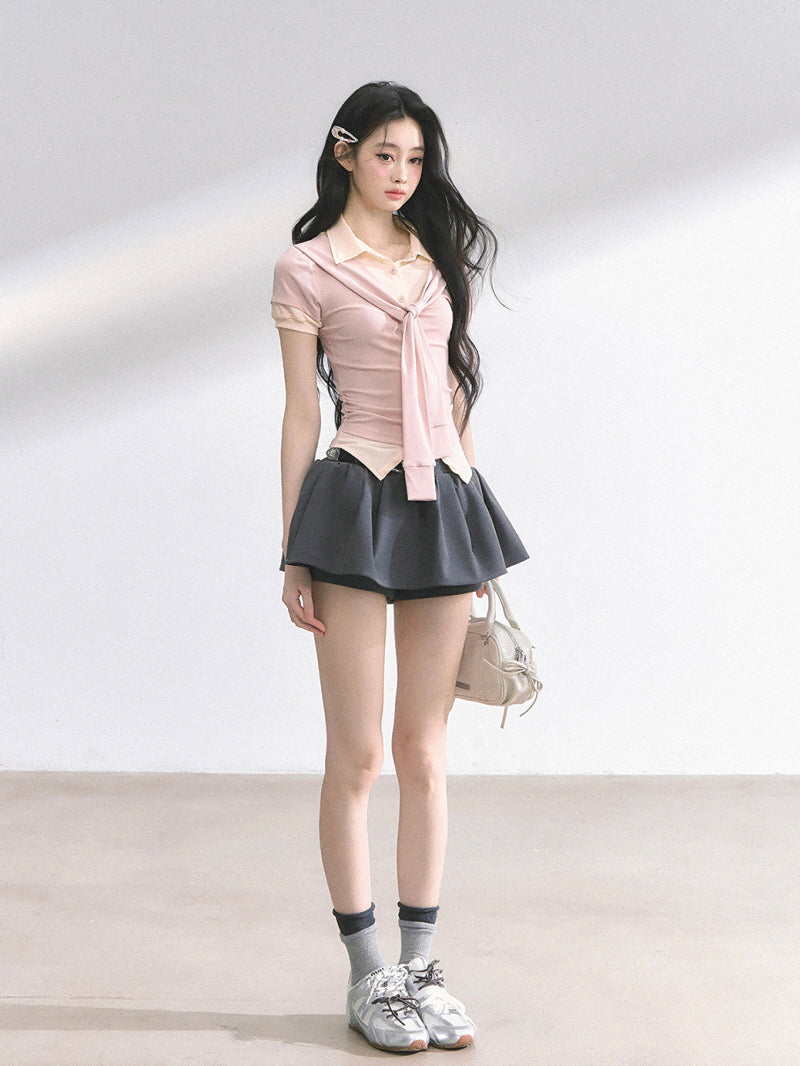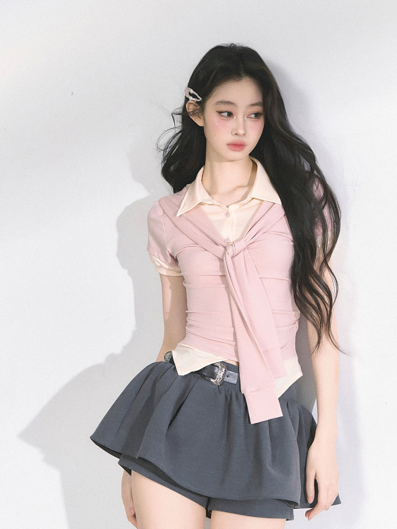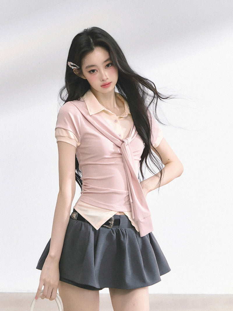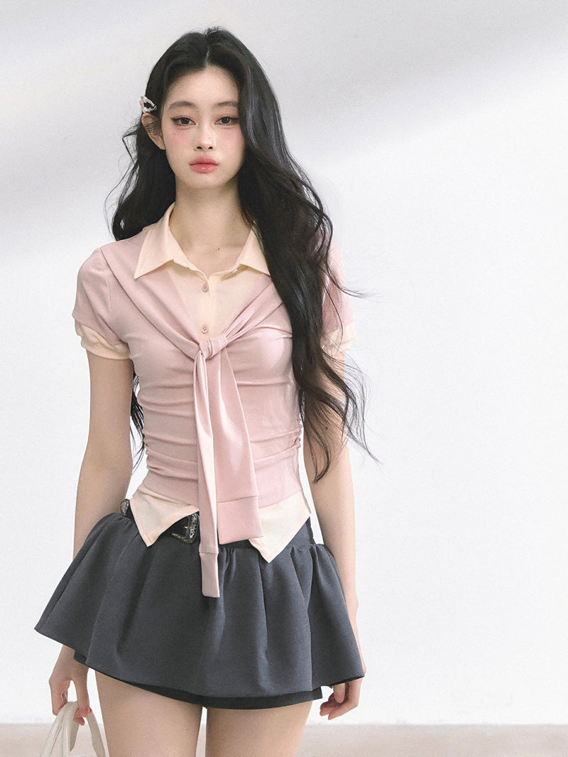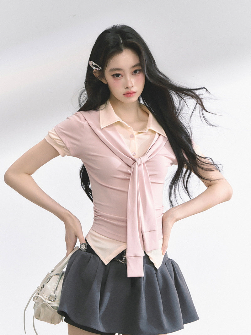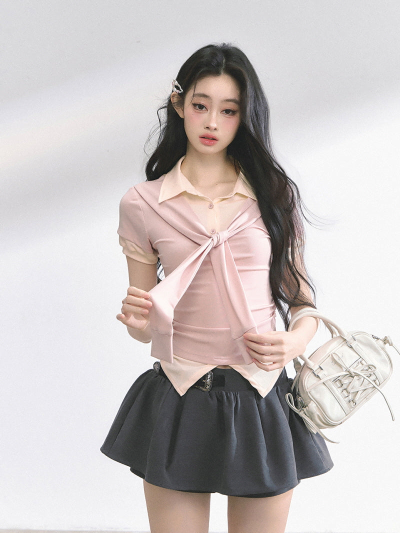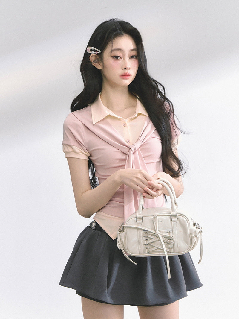 The knit feels soft and the layered tie detail makes it stand out. Cute on its own and perfect for mix-and-match.