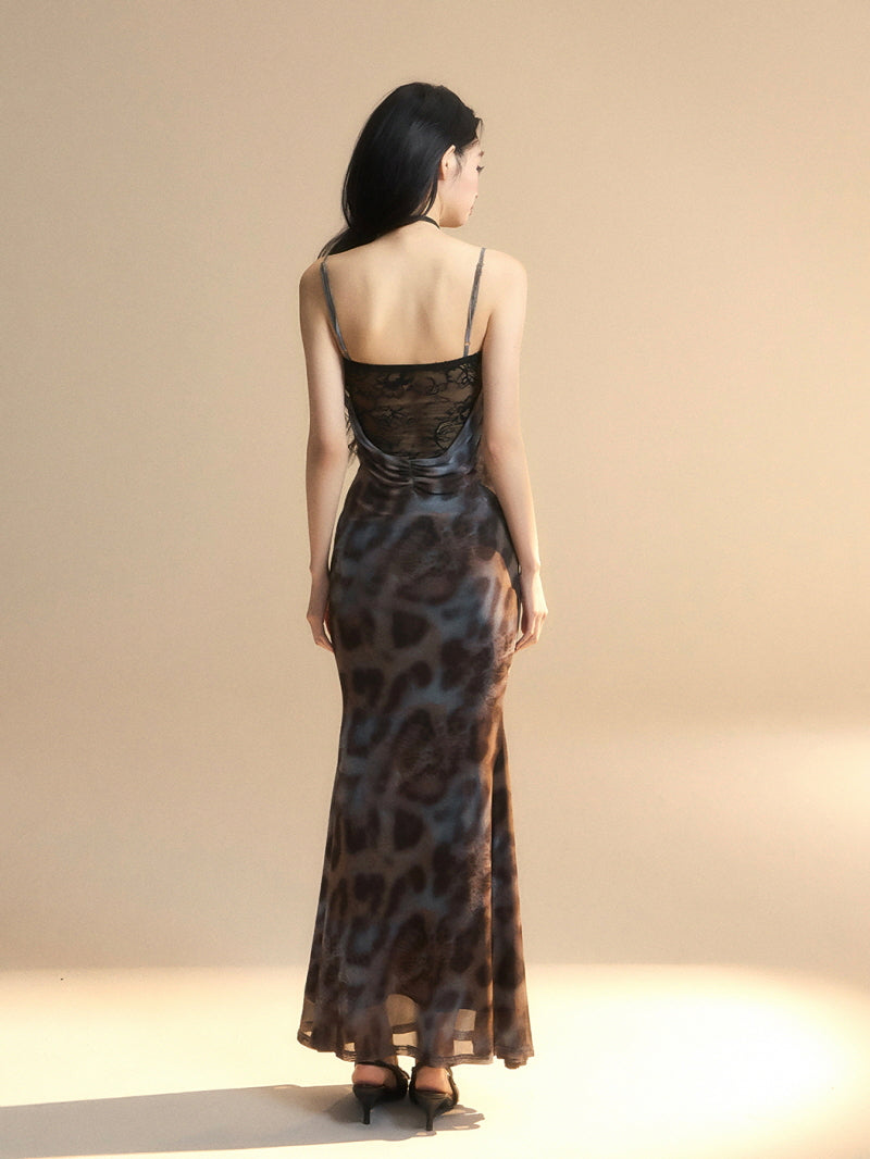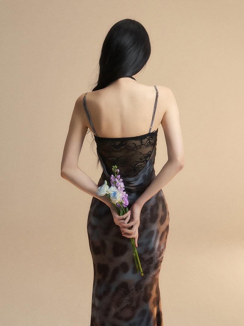 Leopard Print Lace-Up Bustier Maxi Dress