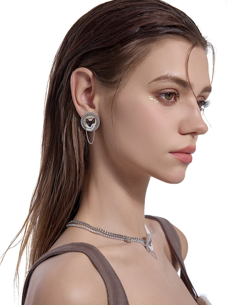 - Heart-shaped studs with glossy crystal edge