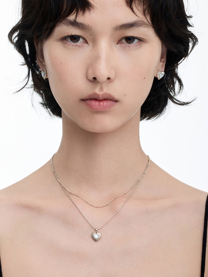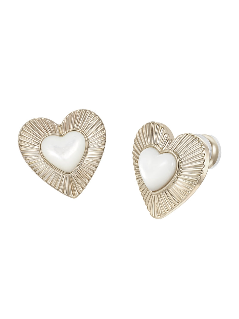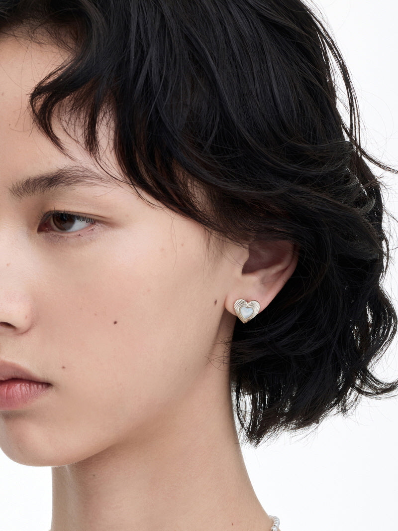 - Compact studs with mother-of-pearl heart
