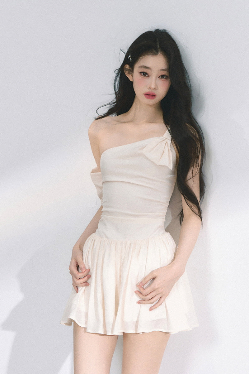 • Fitted tank top with dramatic bow detail