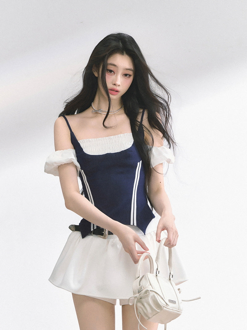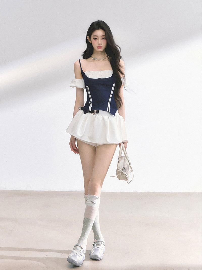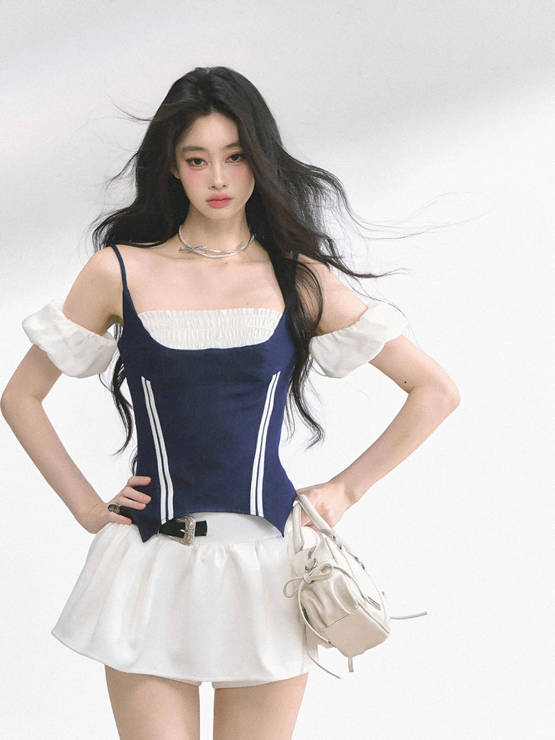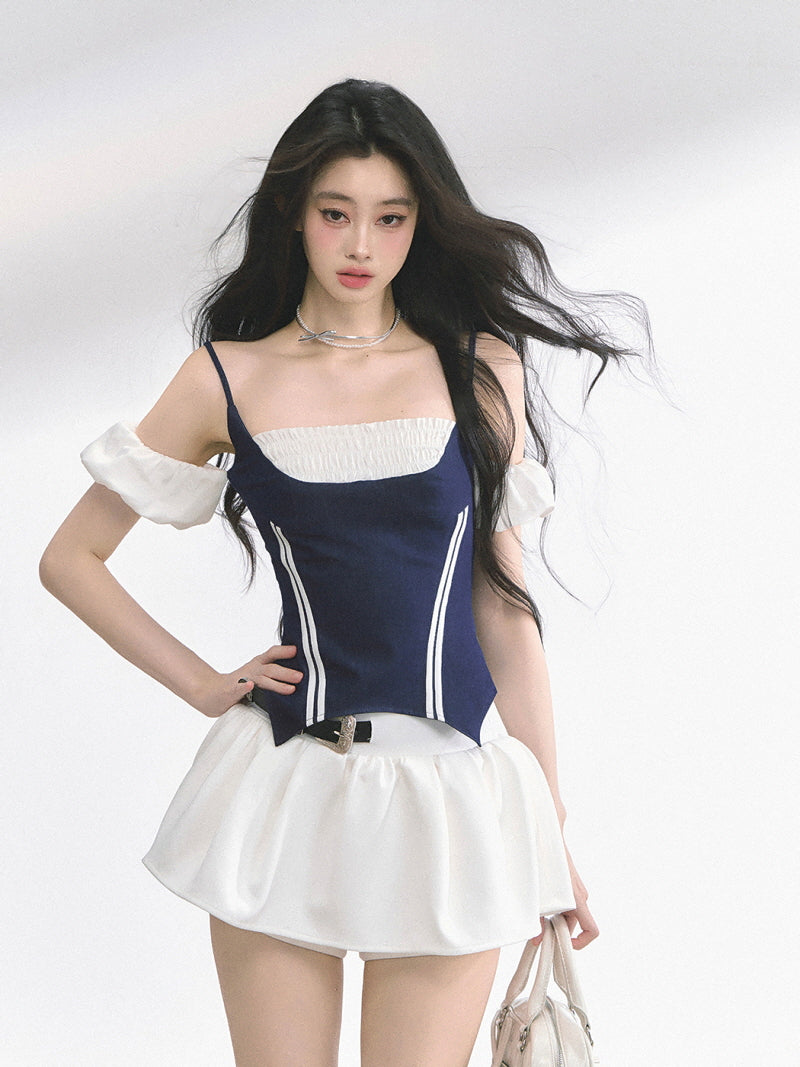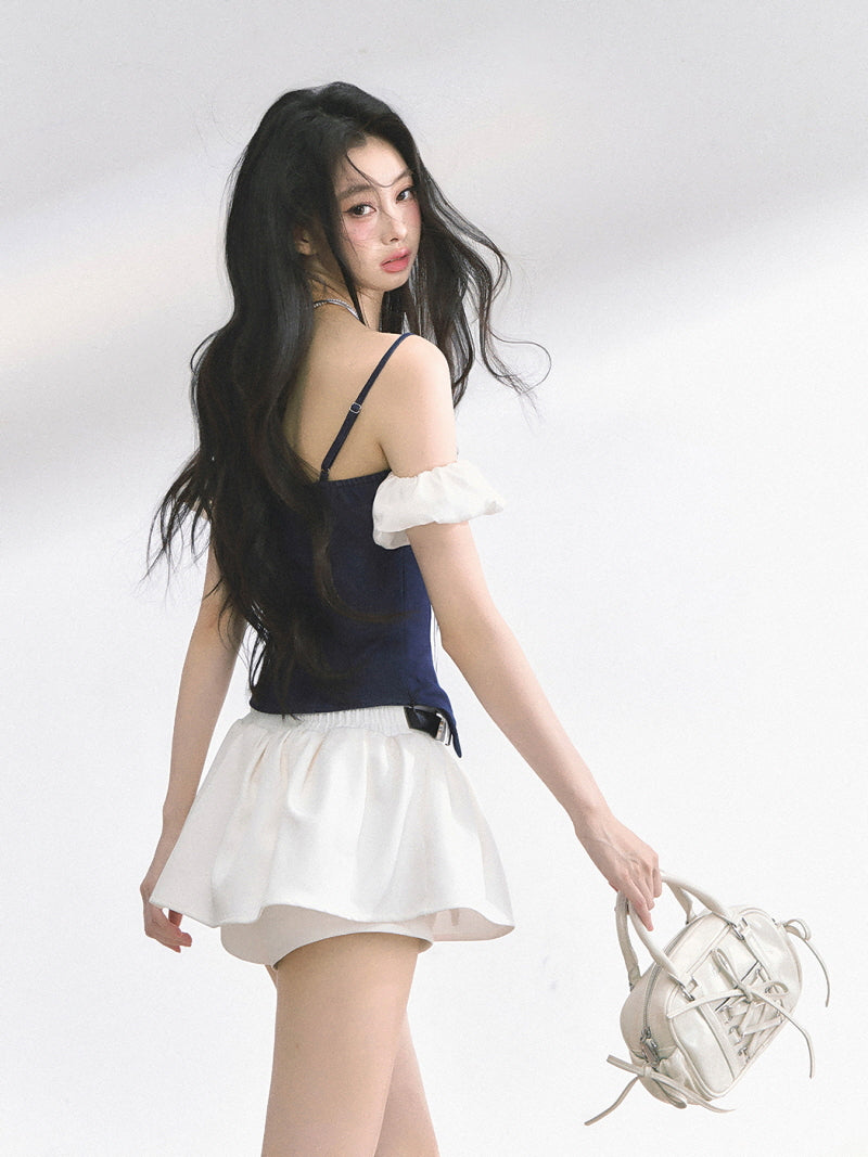 I styled it with a puffy skirt and it was such a cute combo. The navy balances out the volume so the outfit looks polished.