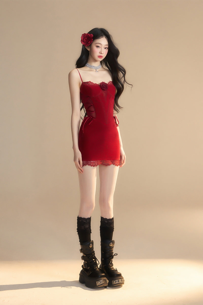 She is the midnight waltz — mysterious, magnetic, and just out of reach. Her gaze lingers like dark perfume, velvet and wild. The rose at her heart seems to bloom only in moonlight. With every step, she weaves a shadowy kind of spell.