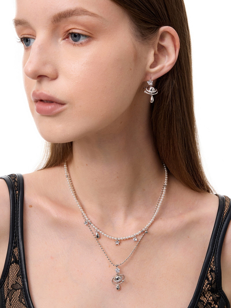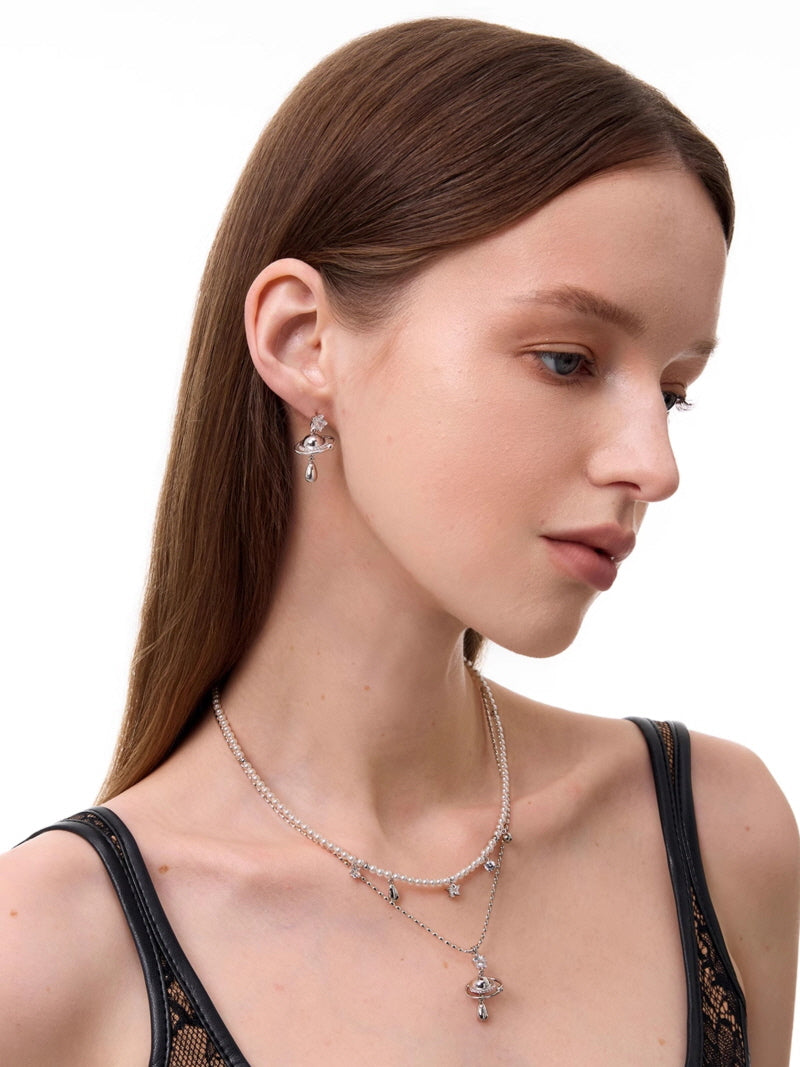 - Sleek drop silhouette with luminous pearls