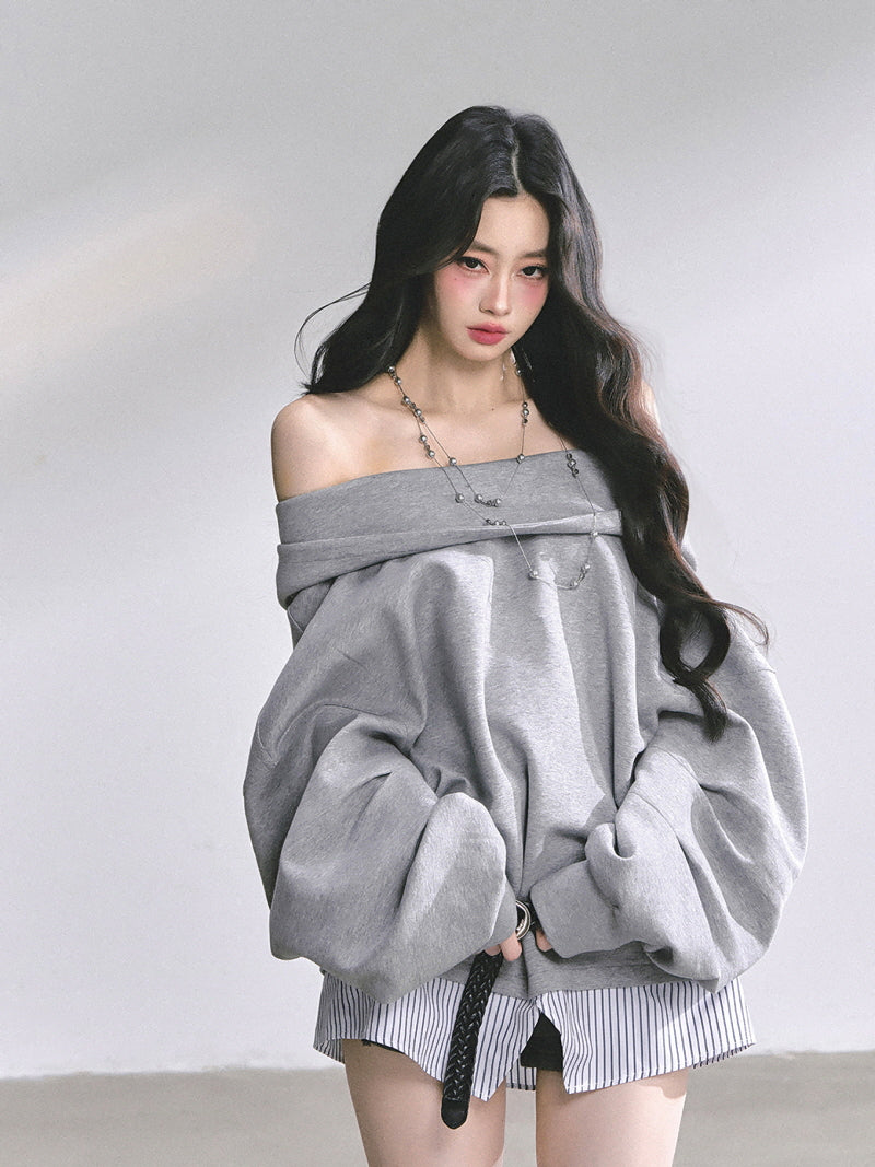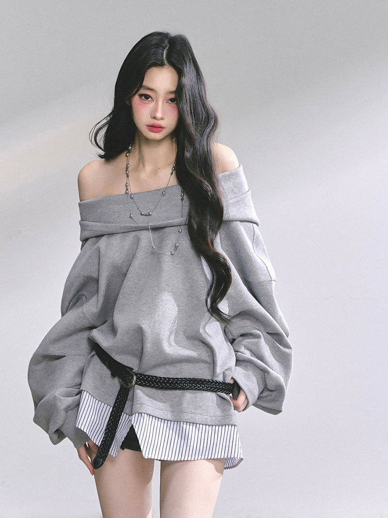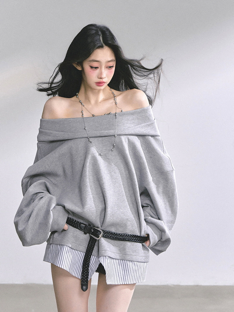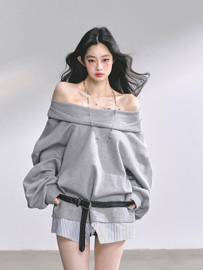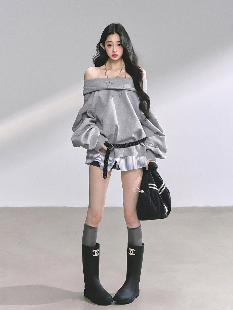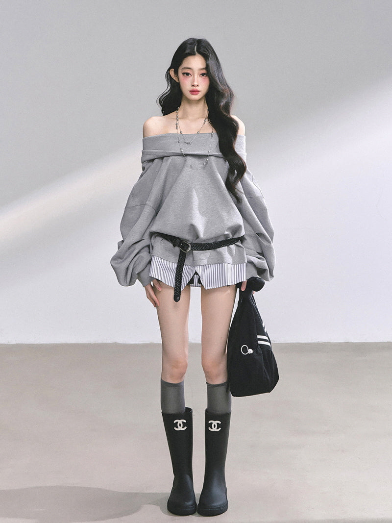 Off-Shoulder Gray Belt Sweatshirt