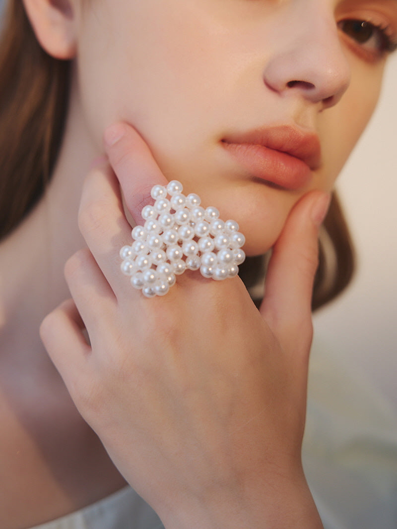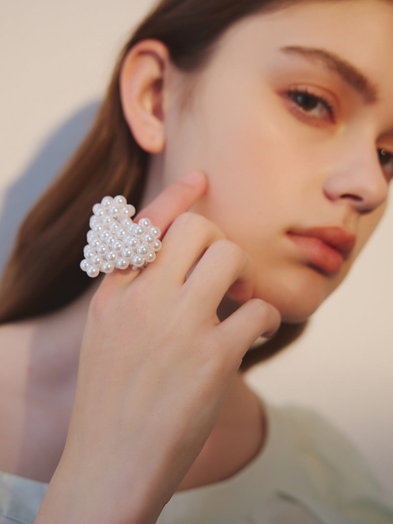 Pearly Heart Cluster Statement Ring