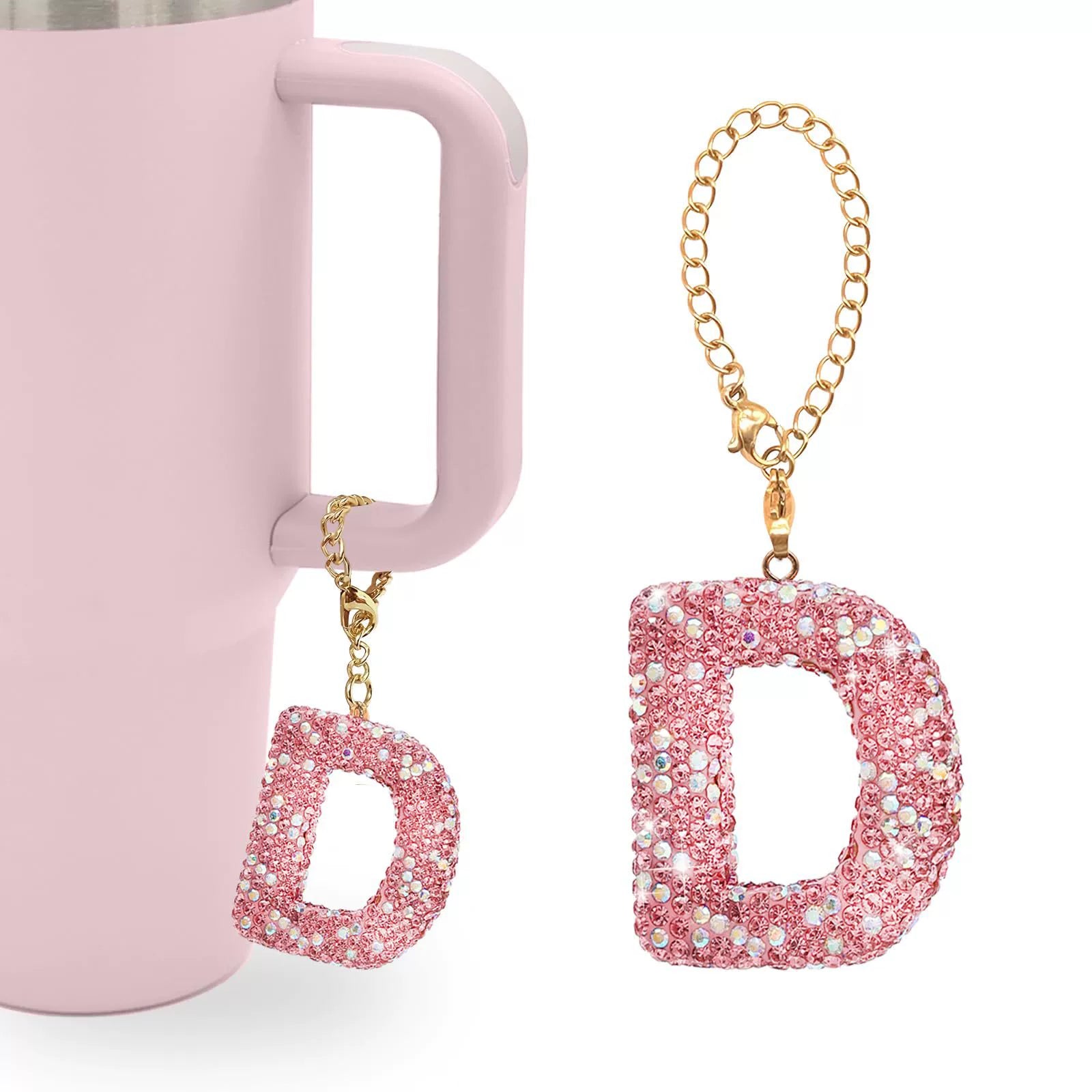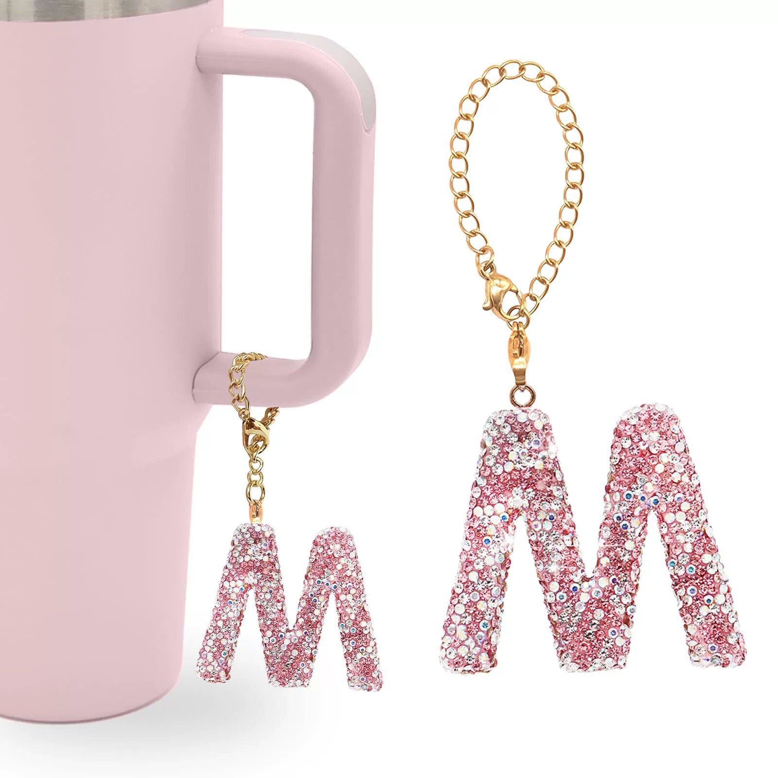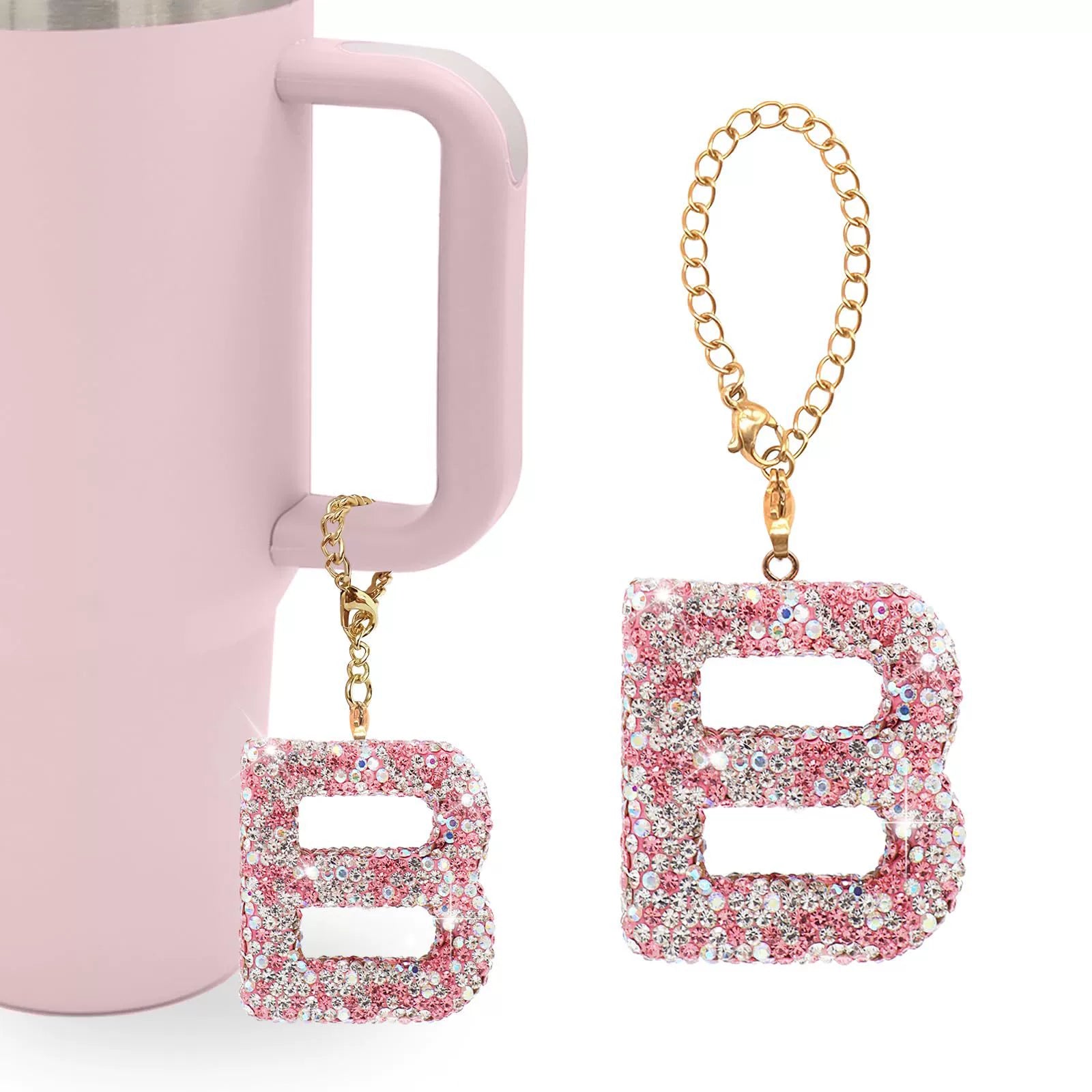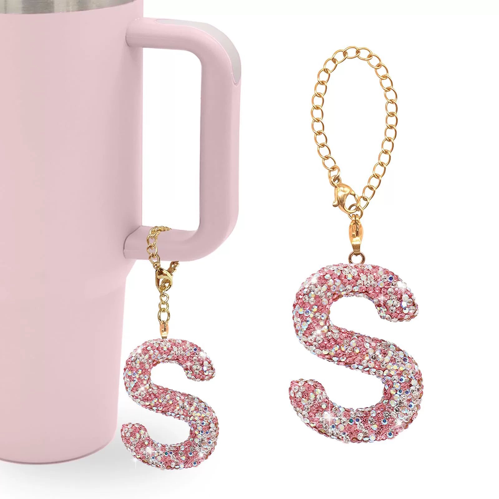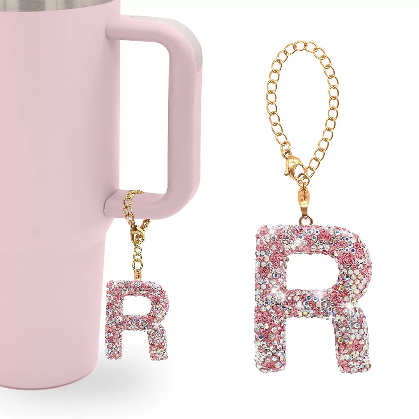 Pink Rhinestone Letter Tumbler Charm