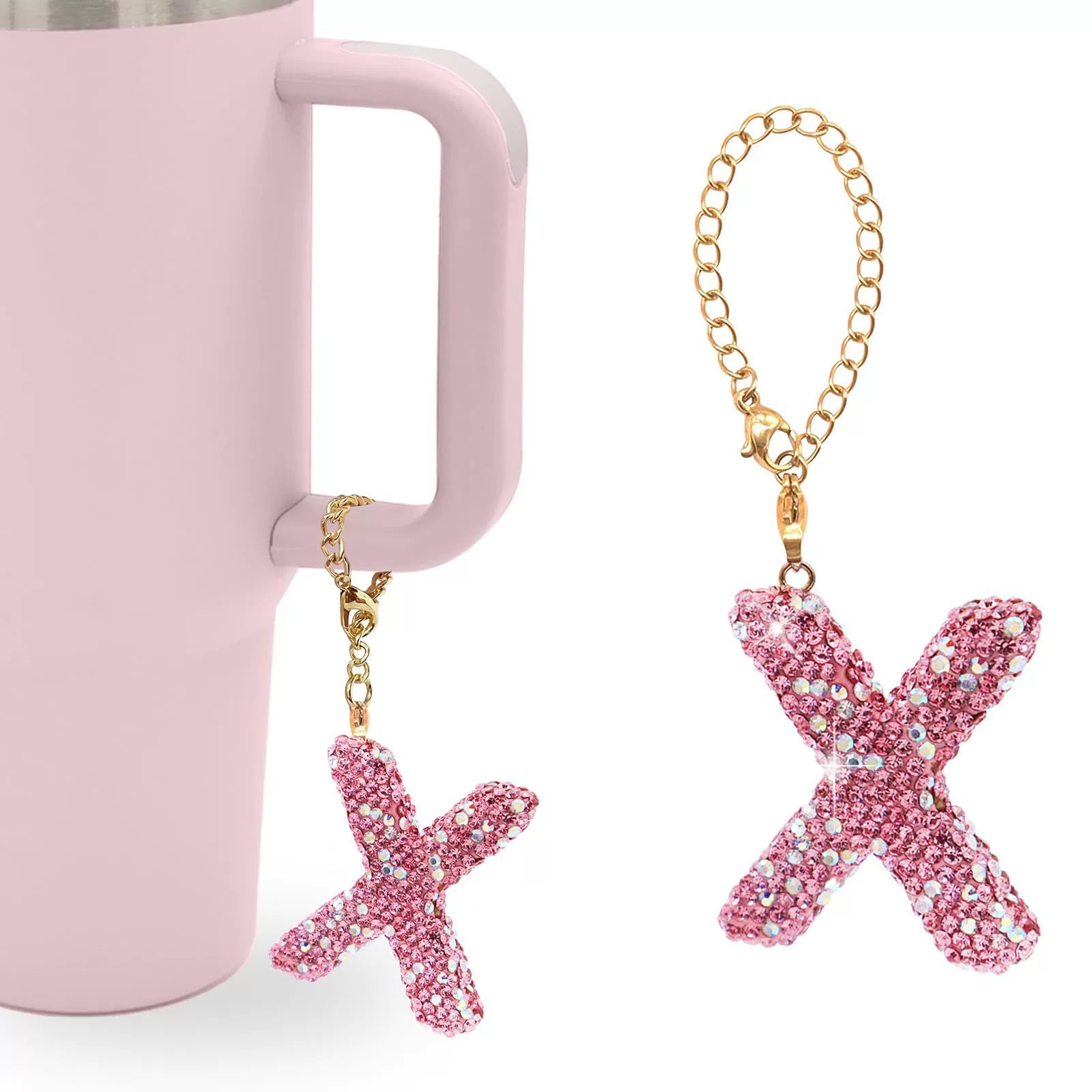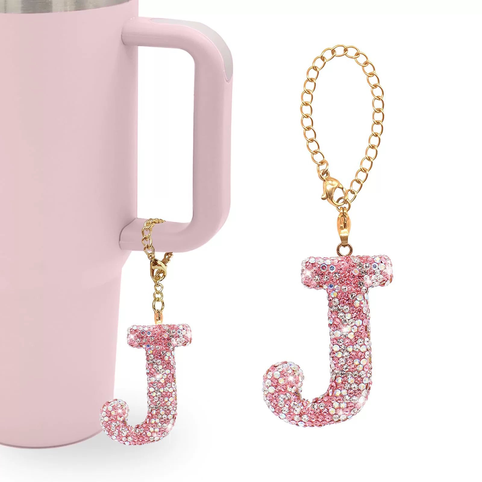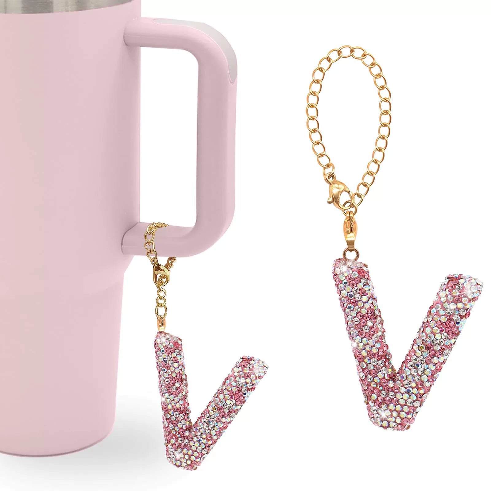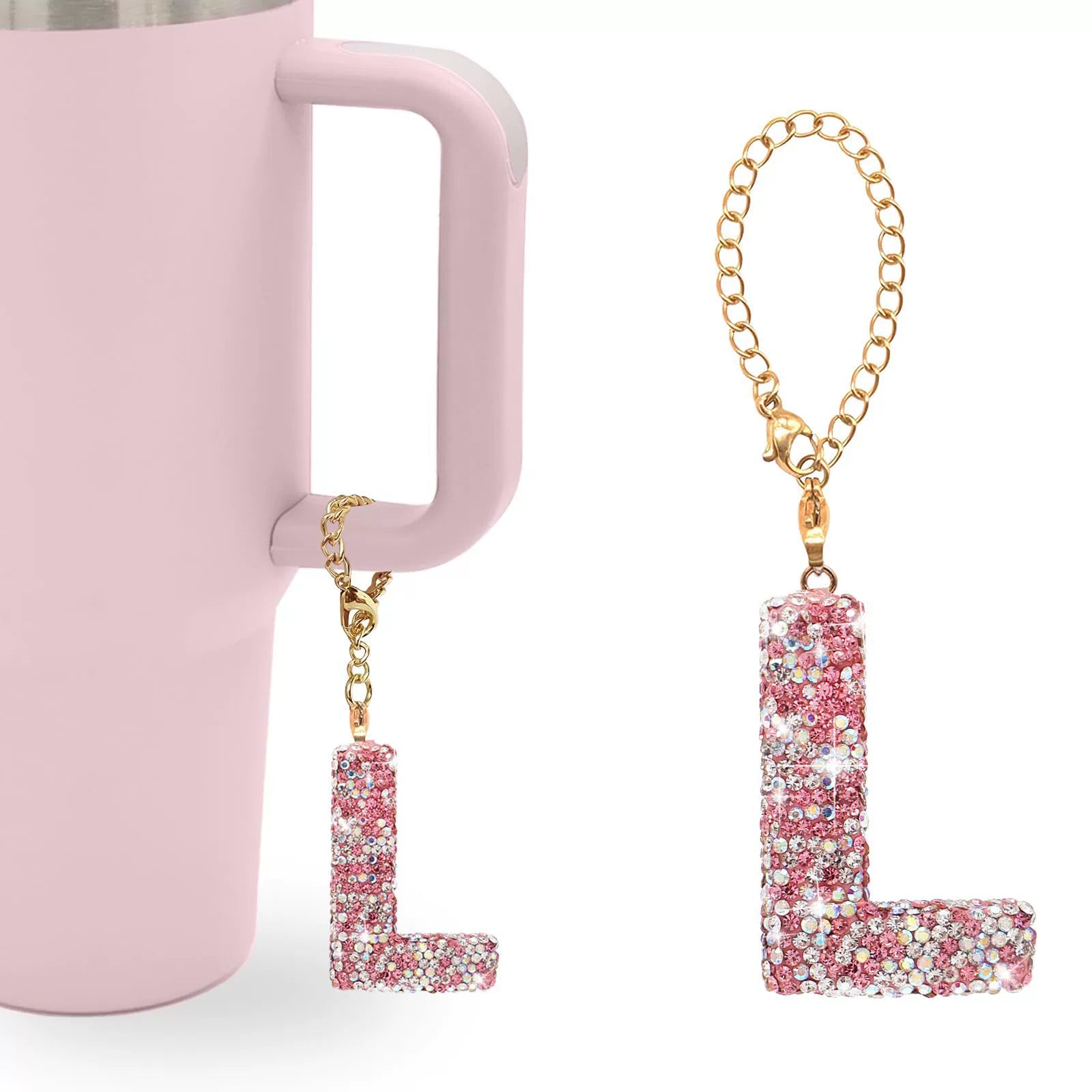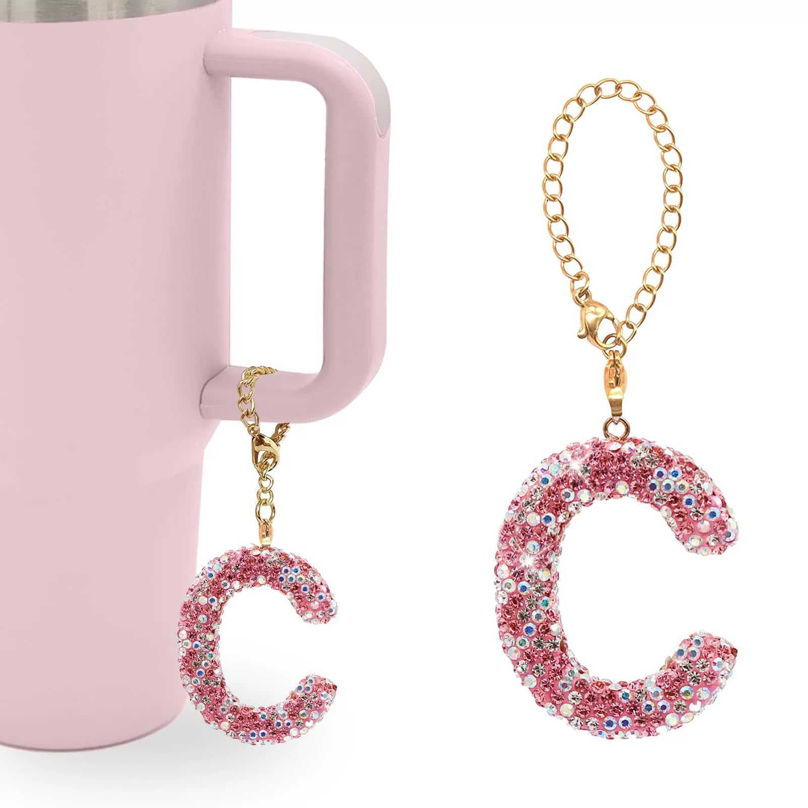 Pink Rhinestone Letter Tumbler Charm