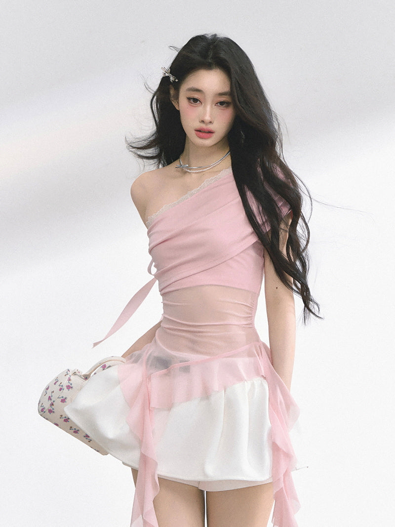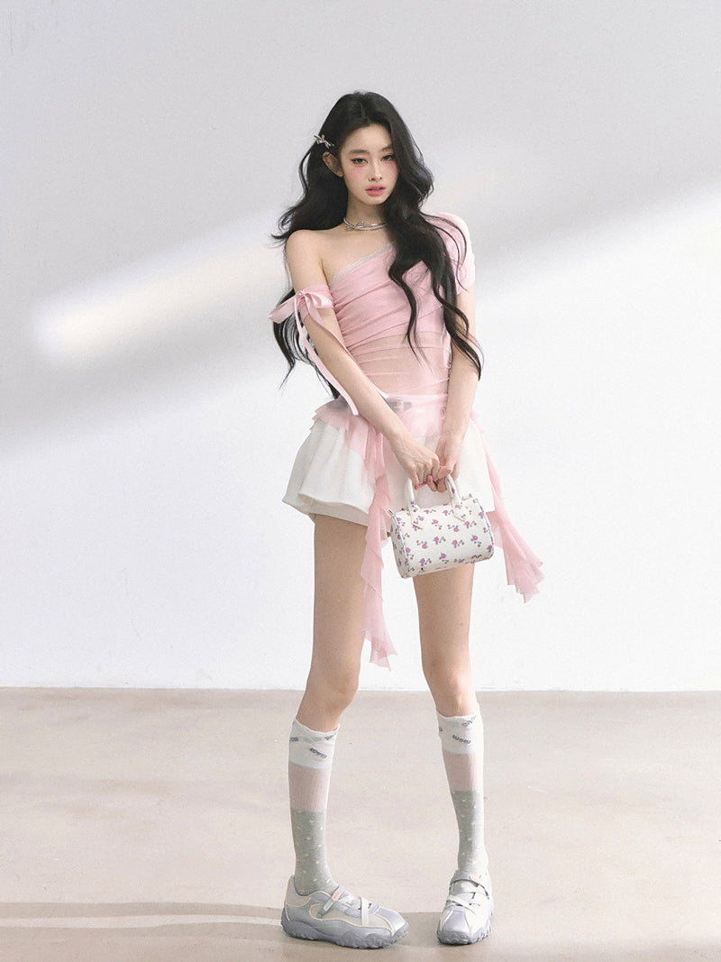 The pink sheer layers give instant “soft girl” energy. It’s flirty but still sweet—paired mine with a pleated mini and white sneakers and it photographed so well.