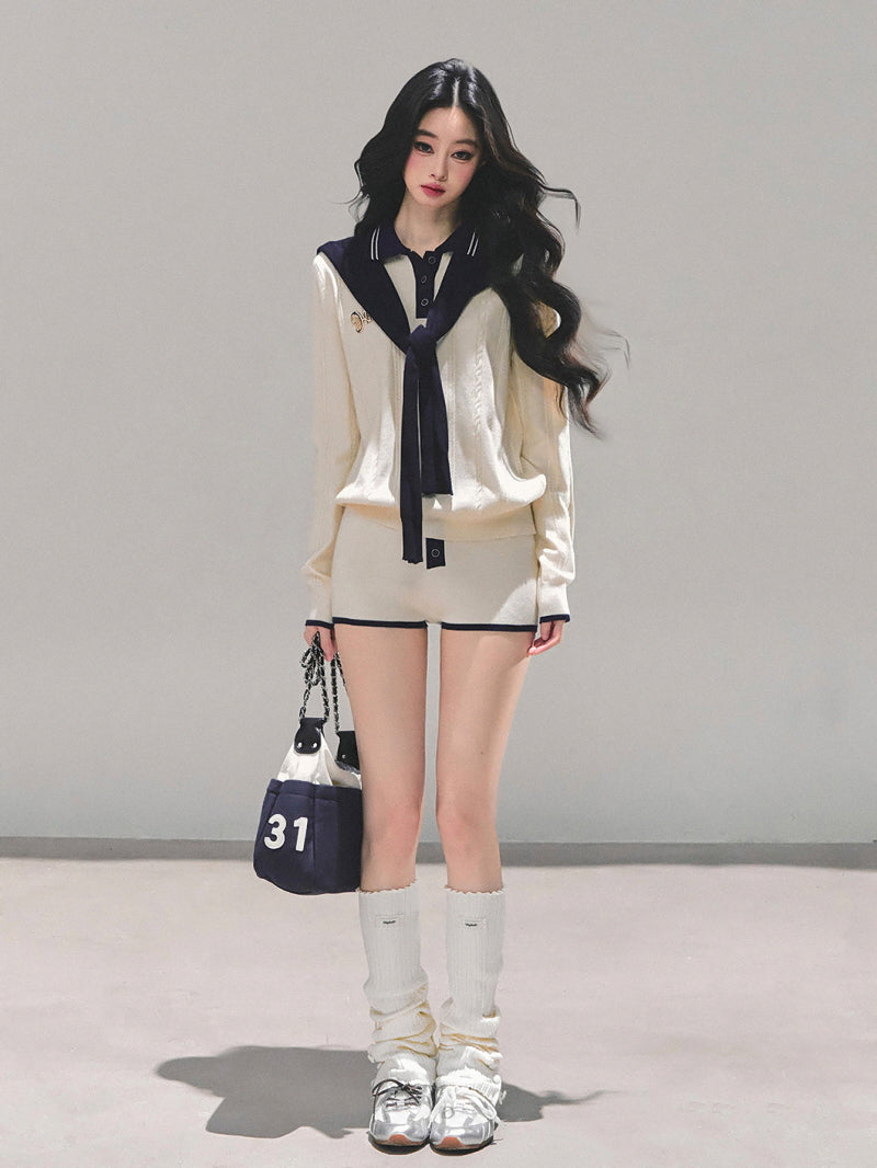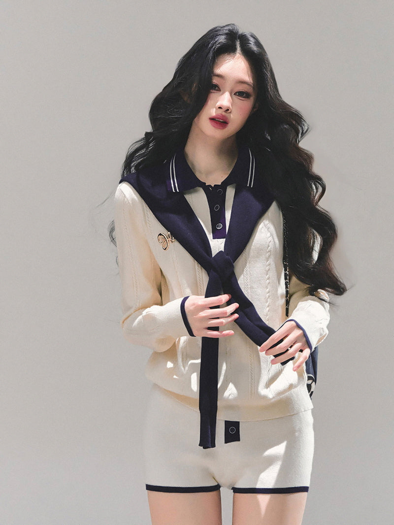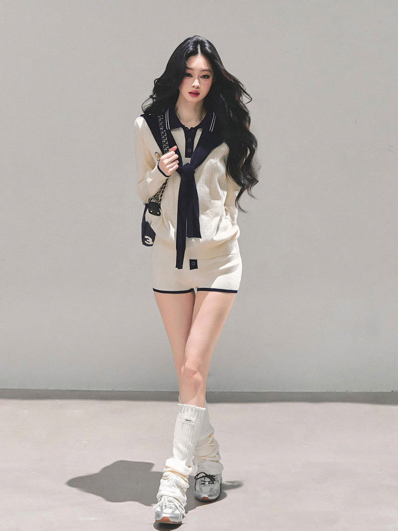 • Knit co-ord with preppy navy trim accents