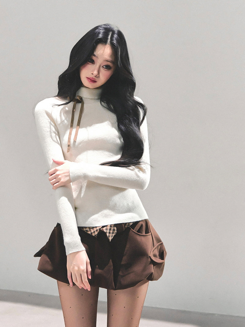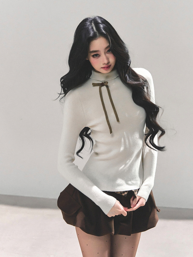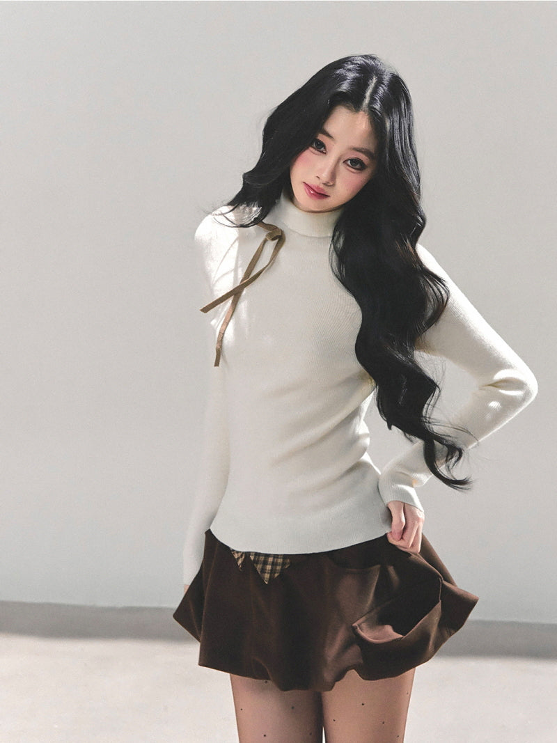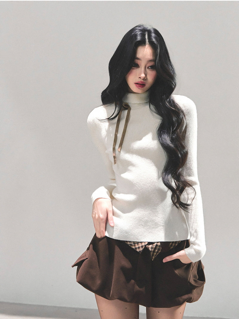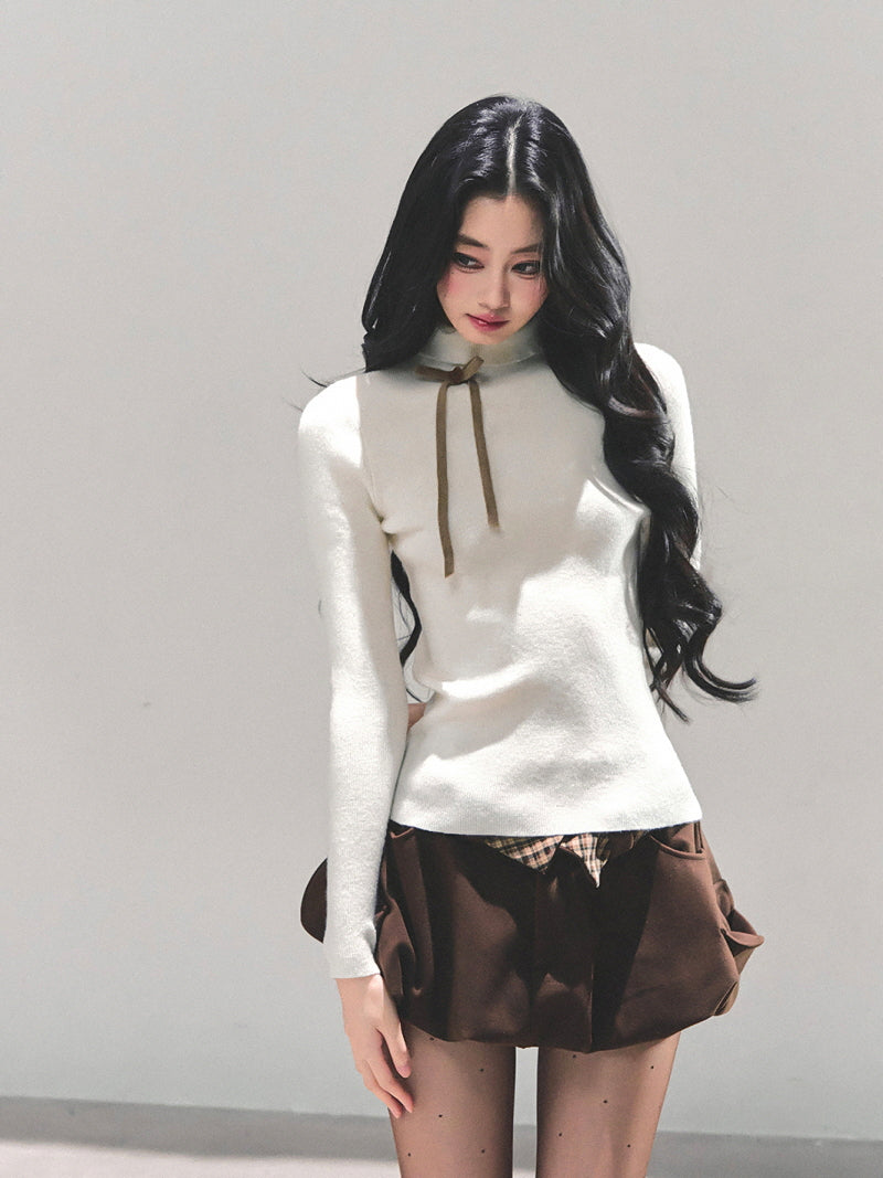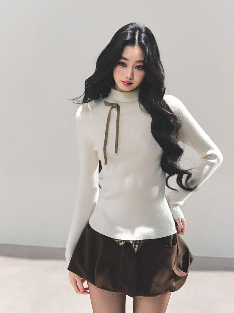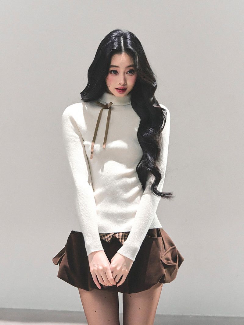 Ribbon Tie Turtleneck Knit - Apricot