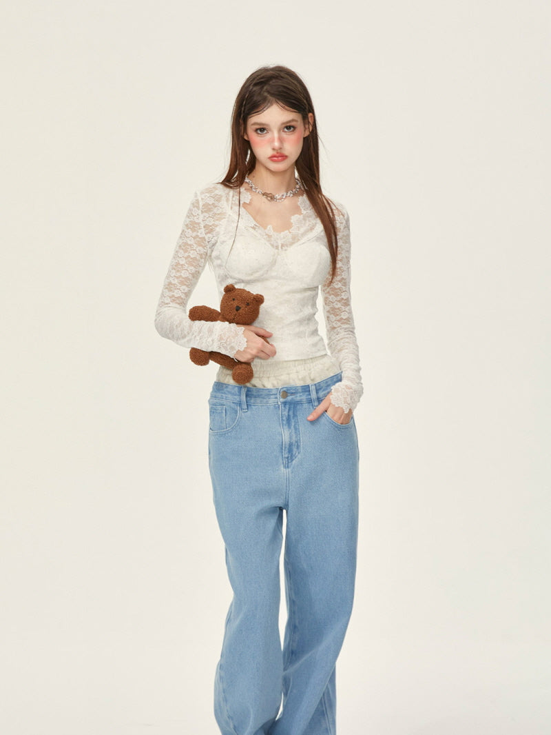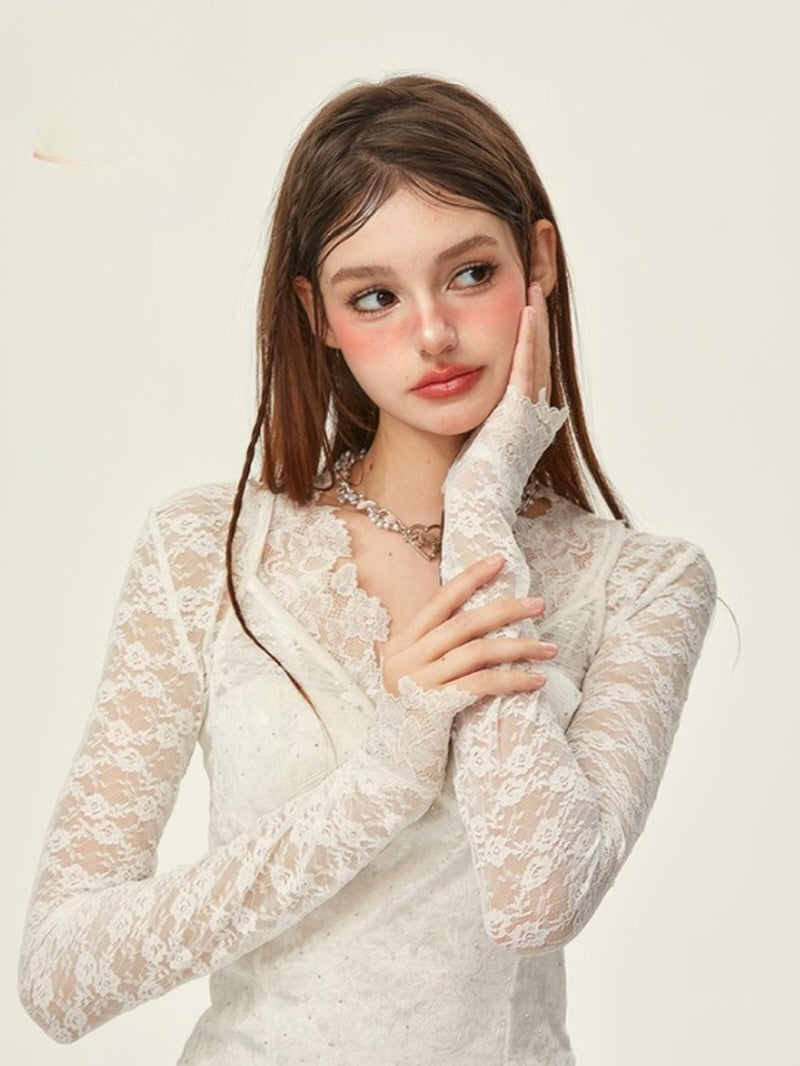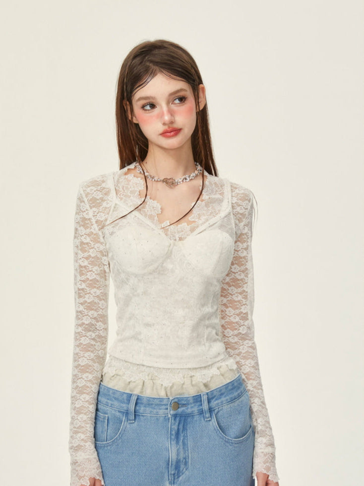 • All-over lace fabric for a delicate, feminine vibe