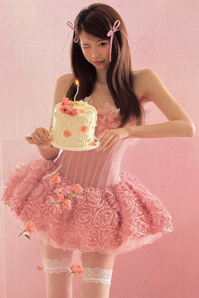 - Soft pink hue completes a dreamy, doll-like fantasy