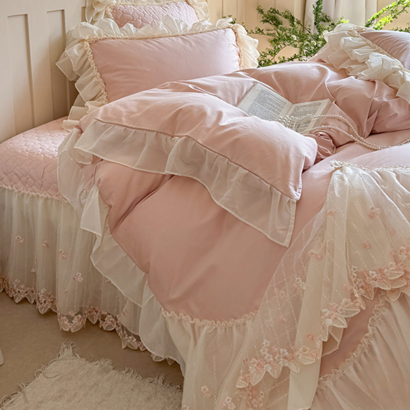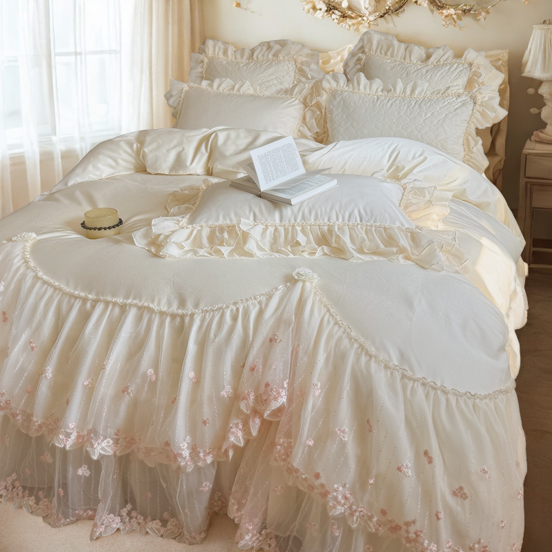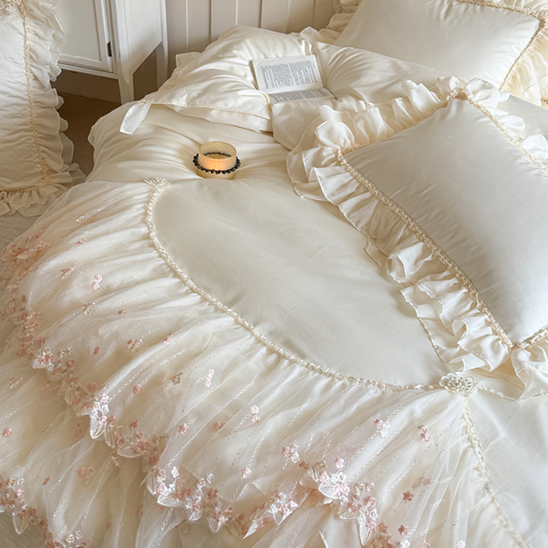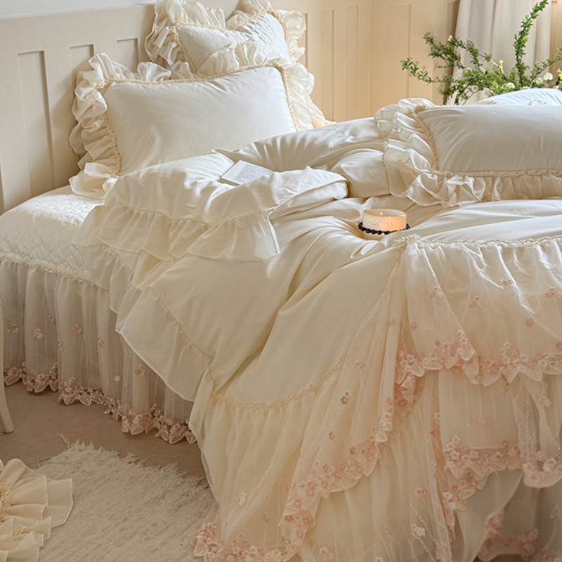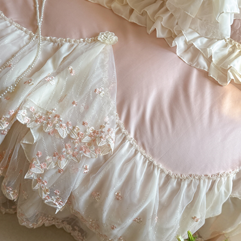 Ruffled Lace Canopy Bedding Set