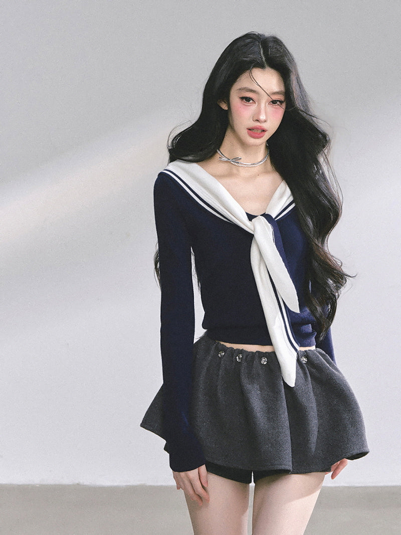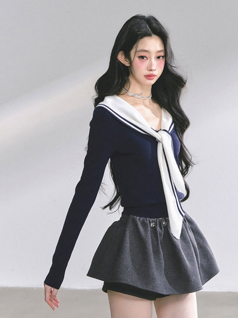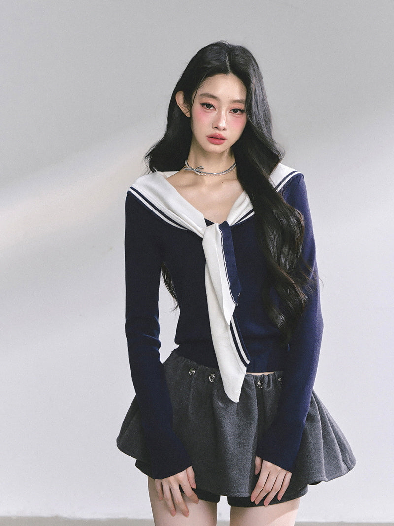 • Cropped sailor knit for a youthful silhouette