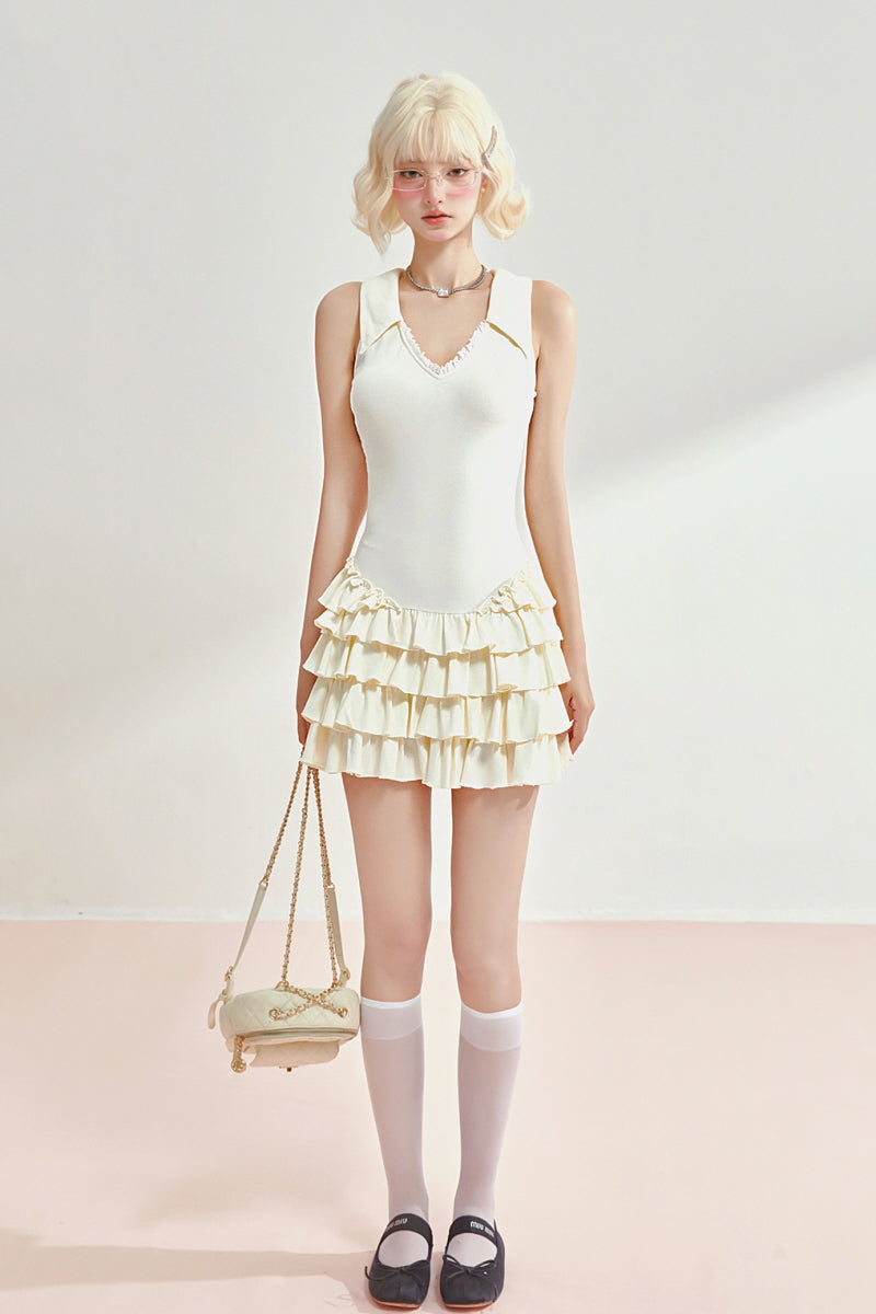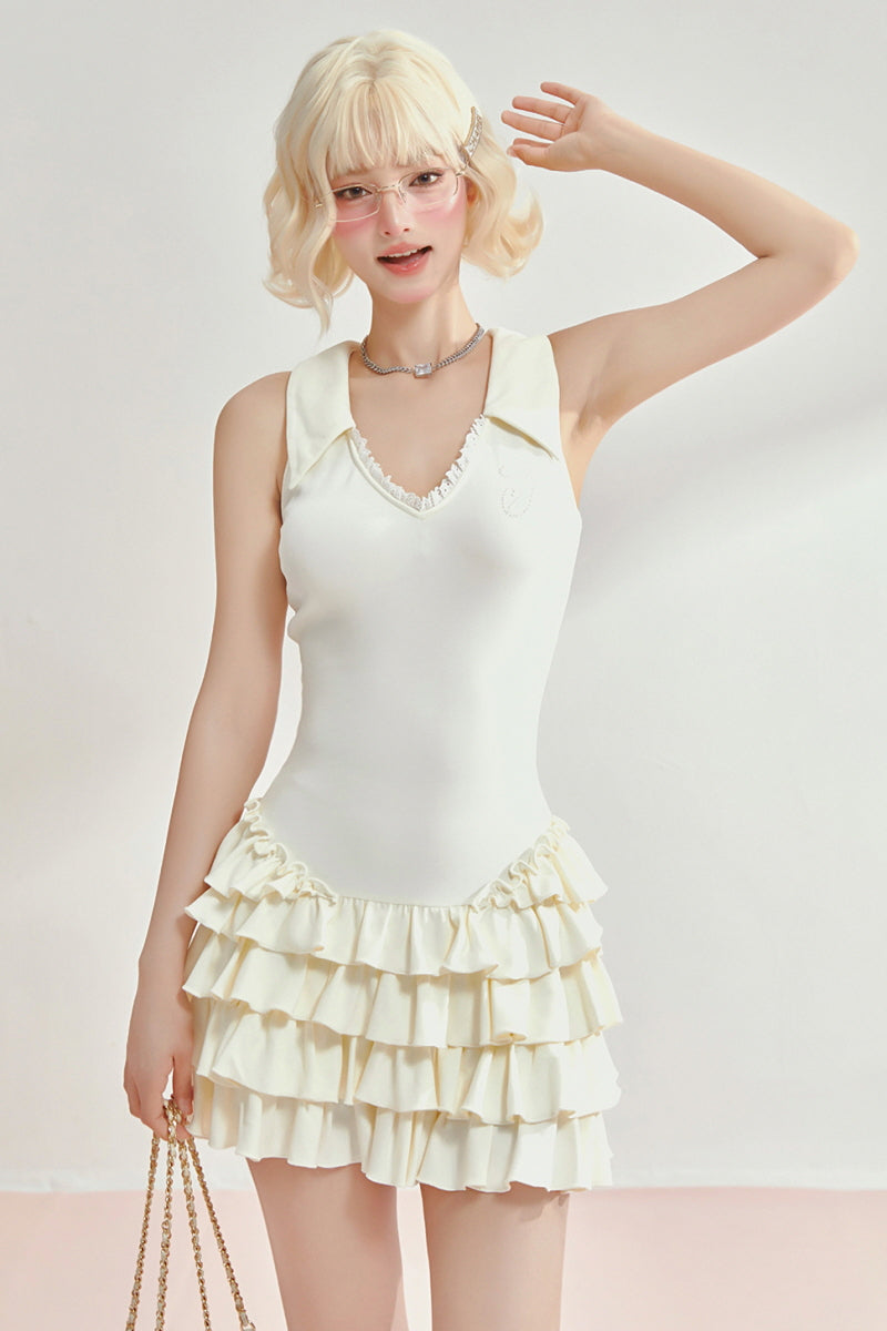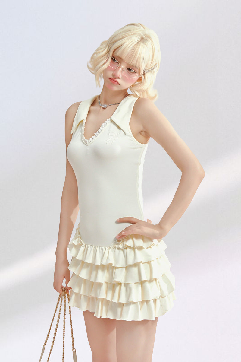 Tennis Frill Mini Dress - Apricot