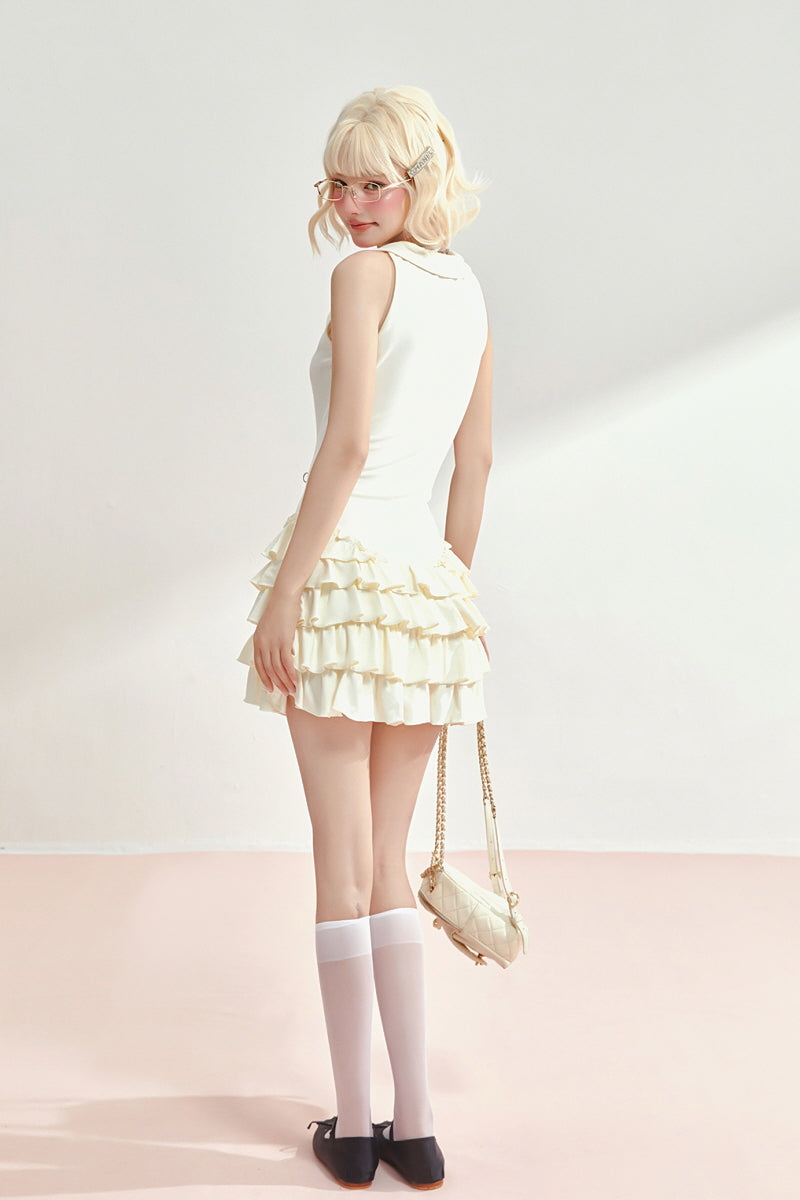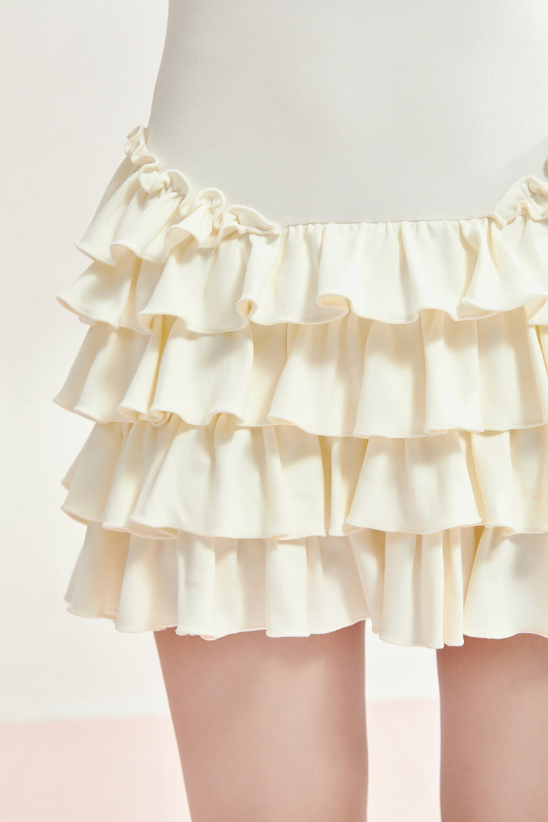 • Tiered ruffle mini skirt adds volume and movement