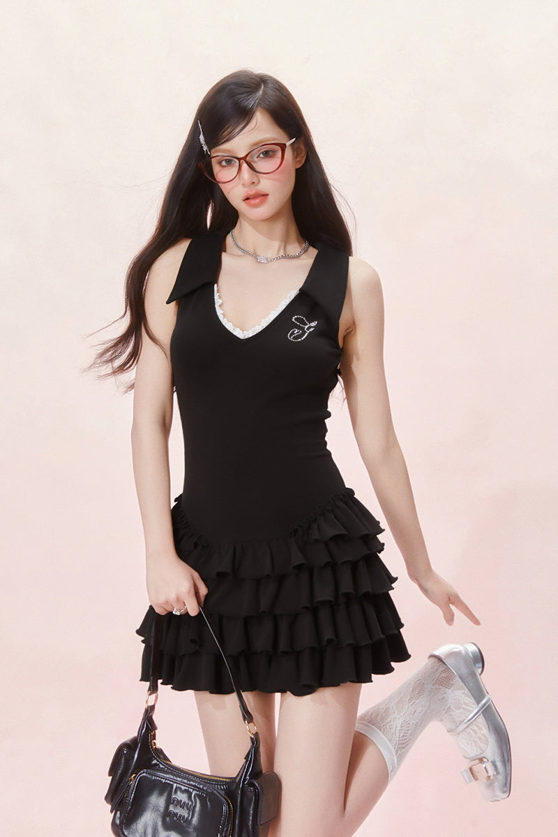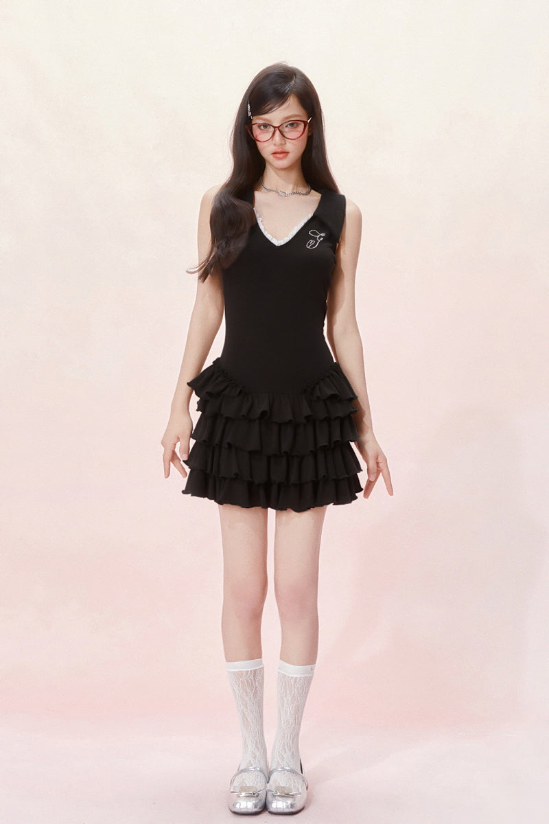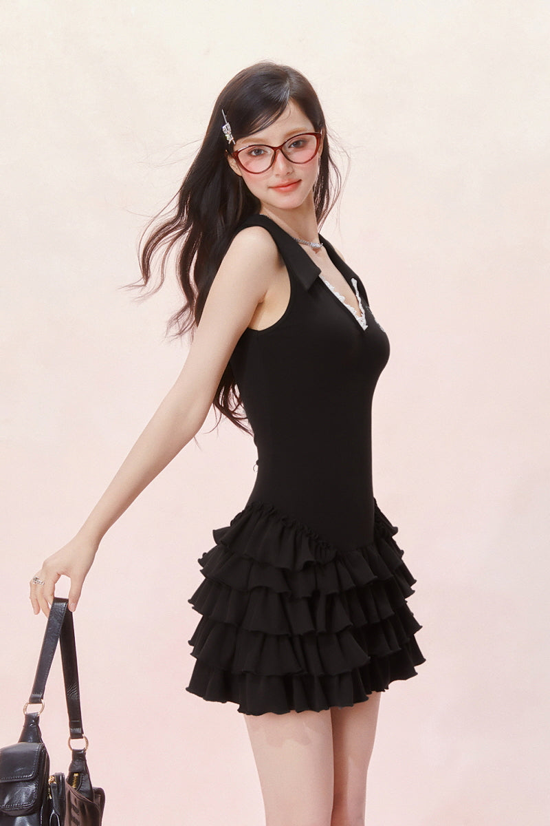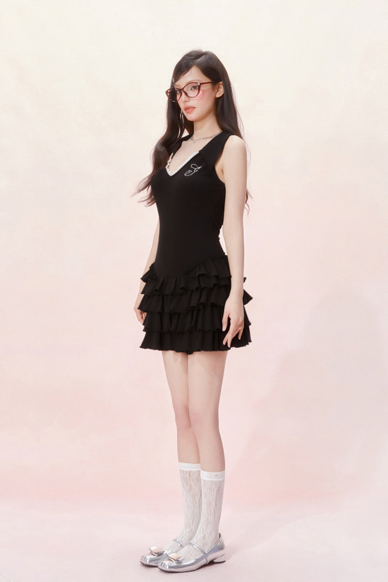 Tennis Frill Mini Dress - Black