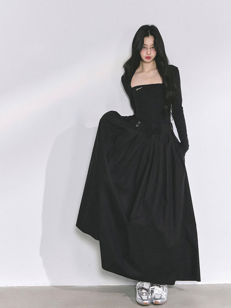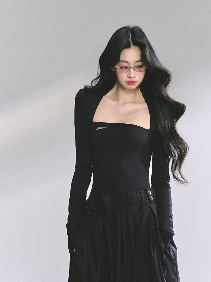 - Ultra-fitted bodice sculpts a sleek silhouette