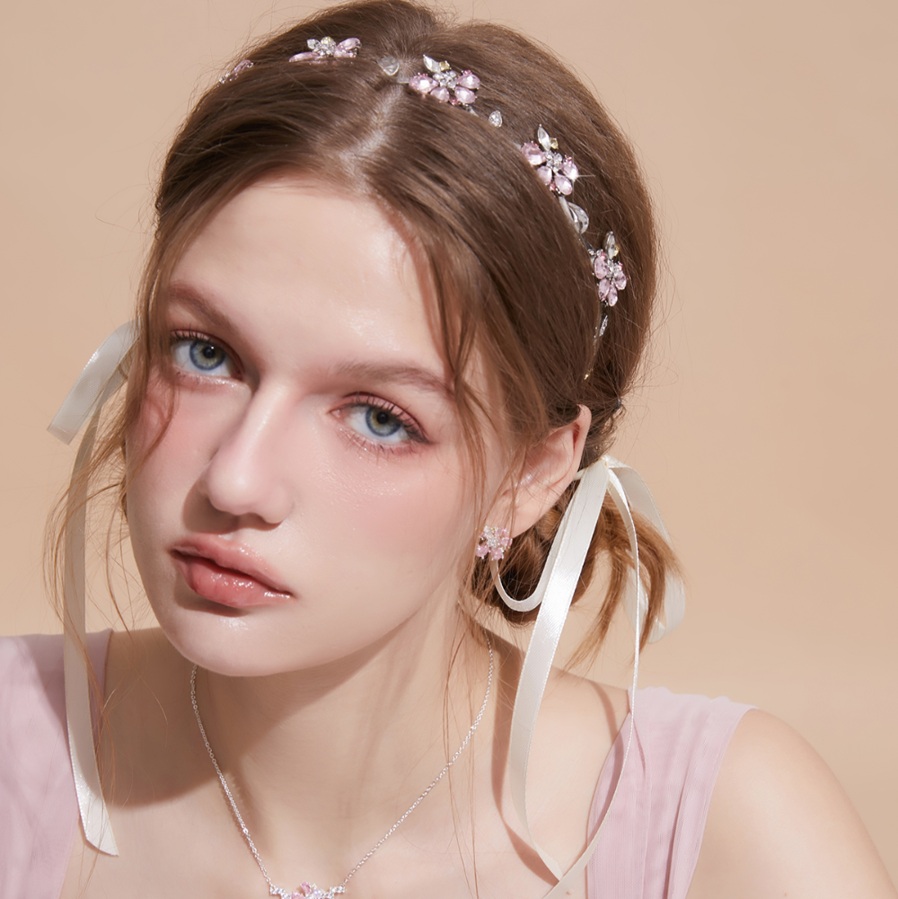 - Pink crystal floral clusters for soft sparkle