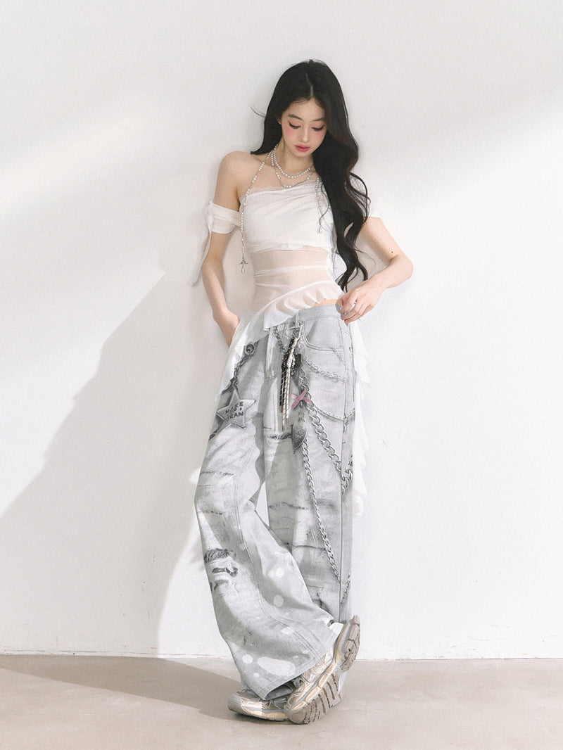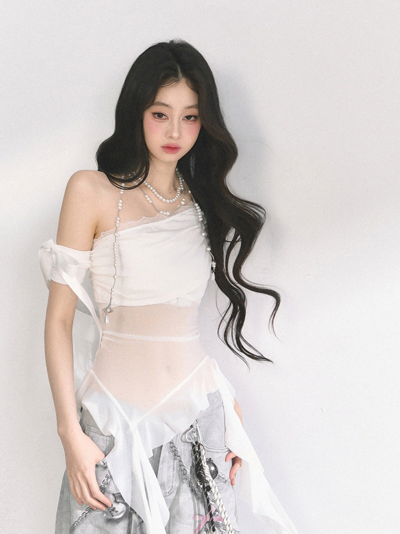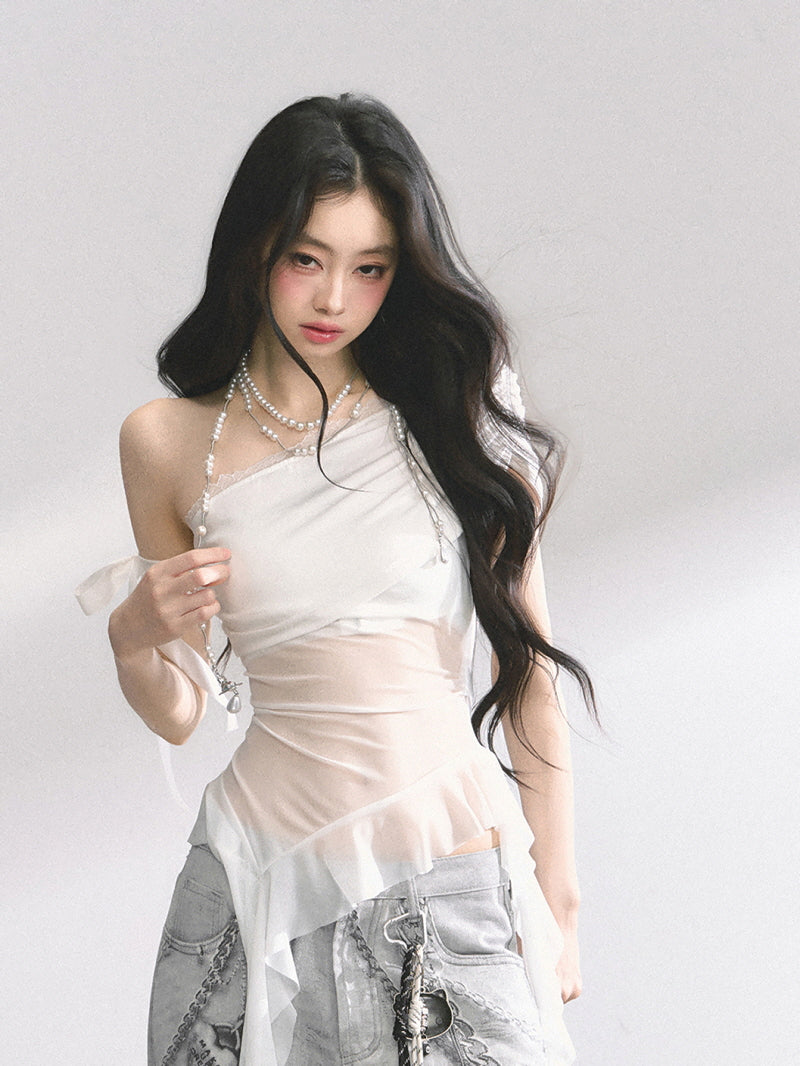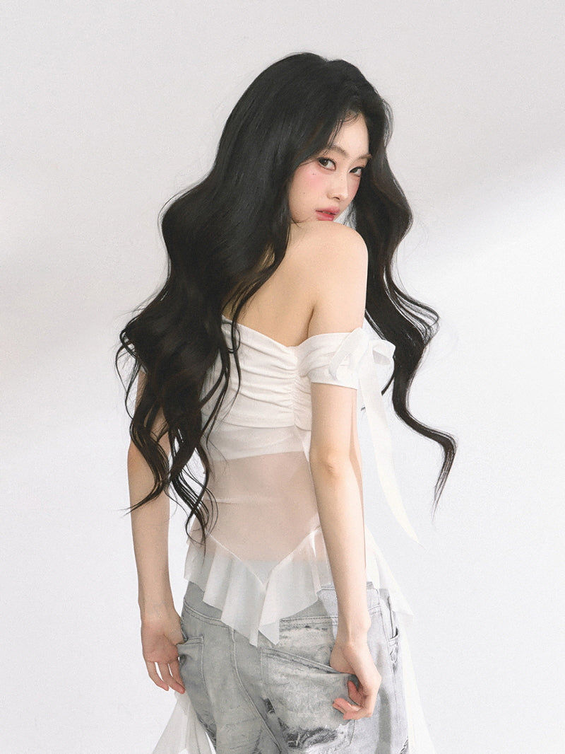 This white layered off-shoulder top is so light and dreamy. The sheer layers sit nicely and it looks cute with a simple cami and jeans. Totally obsessed the moment I unboxed it.